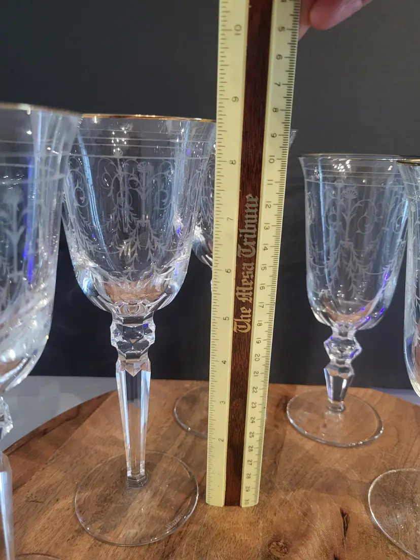Waterford Charlemont Gold Trim wine glass. Please see pictures for measurements. I have this listed in a set of 6 (3 wine and 3 water/tea goblets) in a seperate listing. Shipping cost is based on your location, size and weight of box item is shipped in. If you feel shipping cost is to high let me know what your zip code is and I can see if there is a cheaper option. Shipping is done by USPS, I choose cheapest option when listing but shipping will be USPS. I do combine shipping if you buy more than one item from my store. Any questions please do not hesitate to ask.