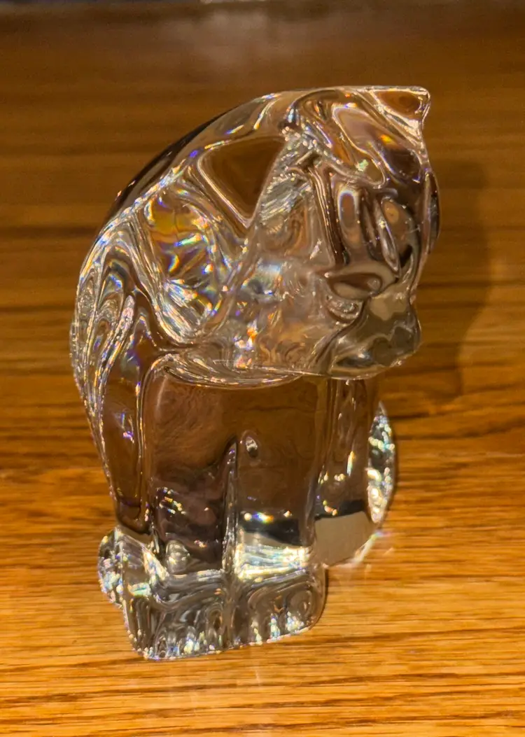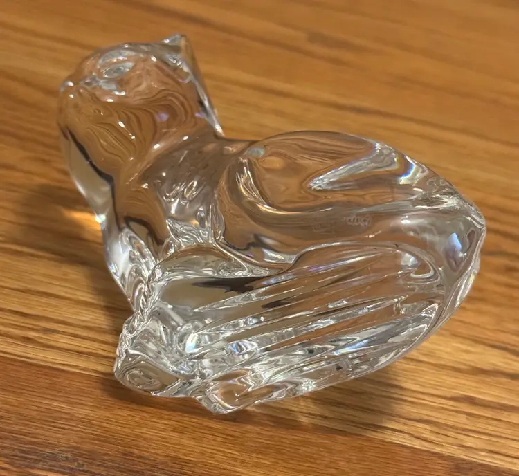 Elegant crystal cat figurine adds a touch of sophistication to any space. Perfect for cat lovers and collectors. Waterford Solid Crystal 4" tall Cat Looking Down Paperweight