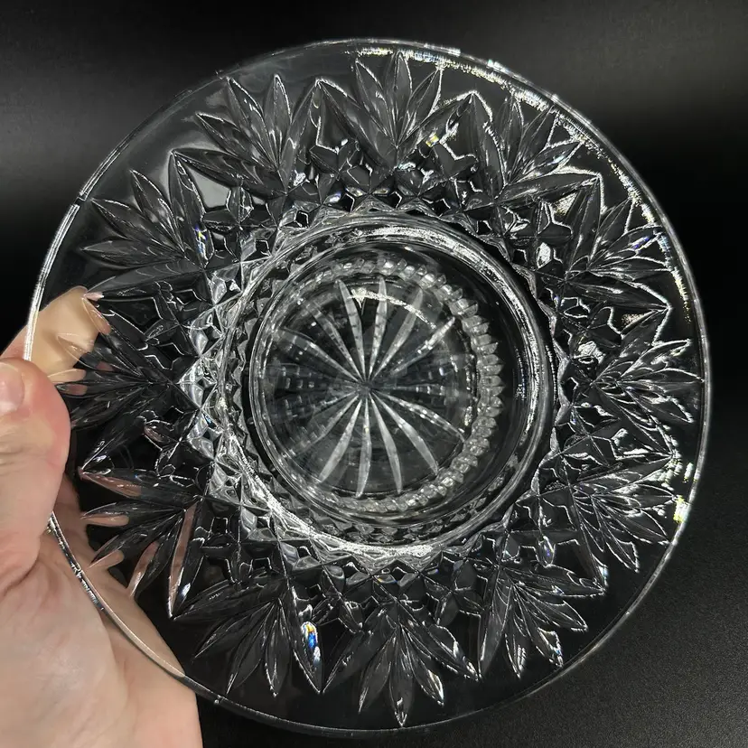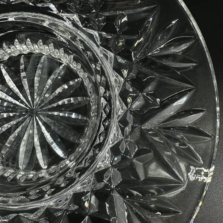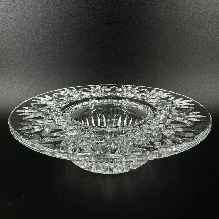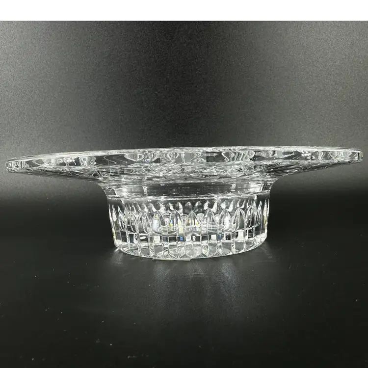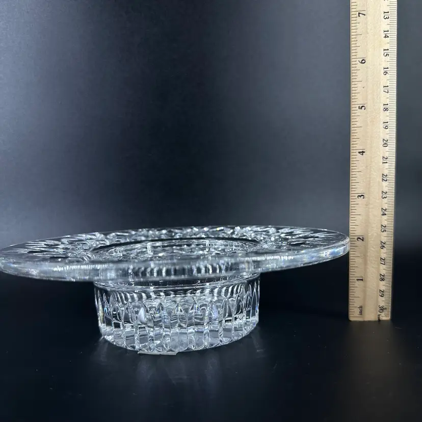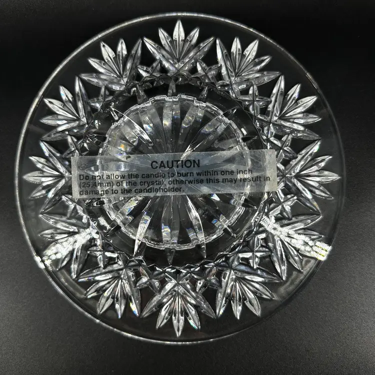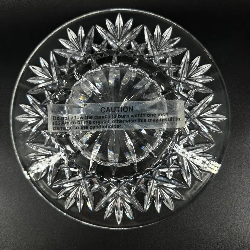 This is a Bethany pillar candle holder by Waterford. It is made of etched crystal. There are no chips or cracks. No signatures or markings. Includes instruction sticker on the bottom. Piece measures approximately 8” x 8”. Actual candle holder measures approximately 3 3/4” x 1.5”.