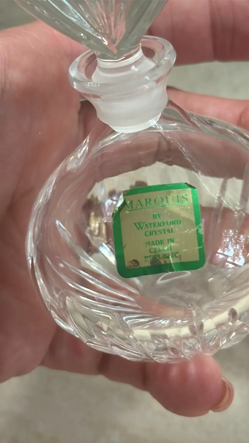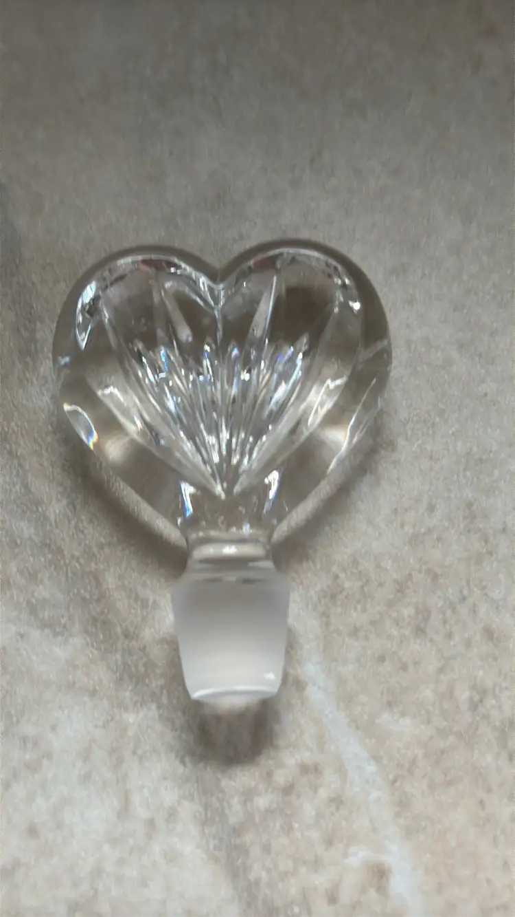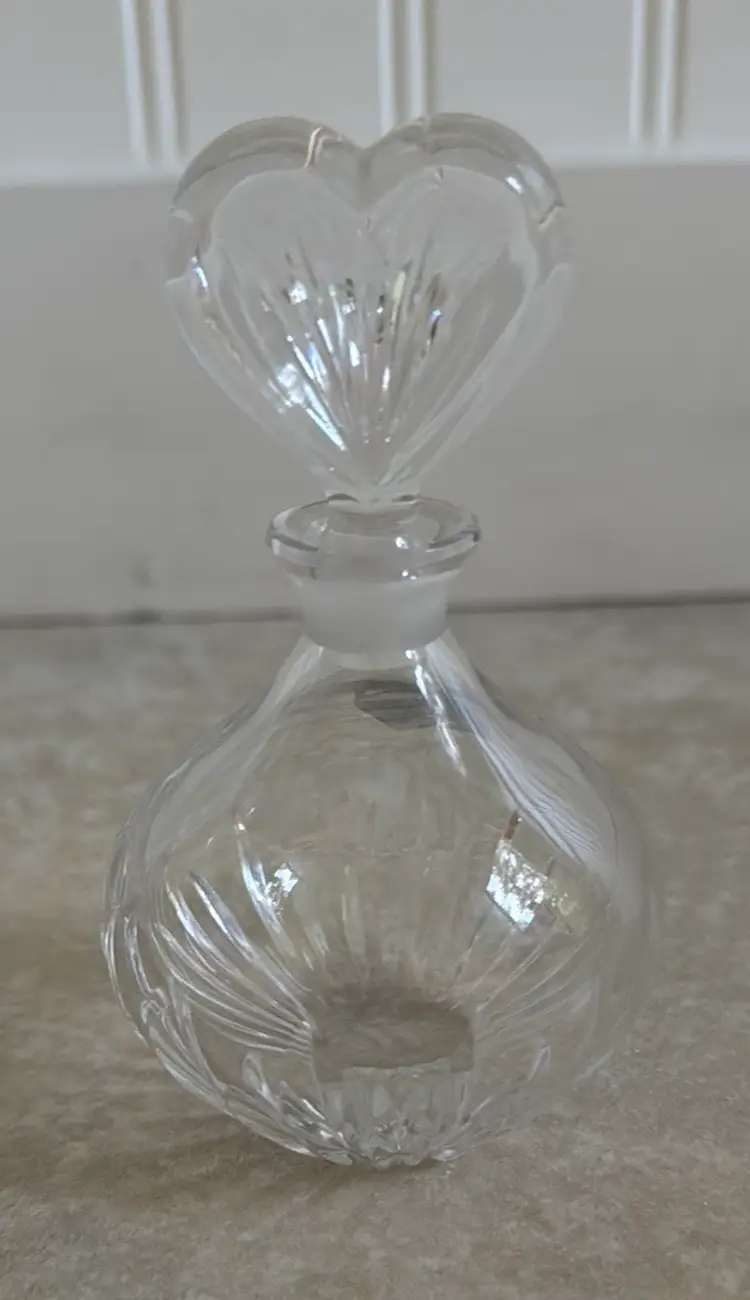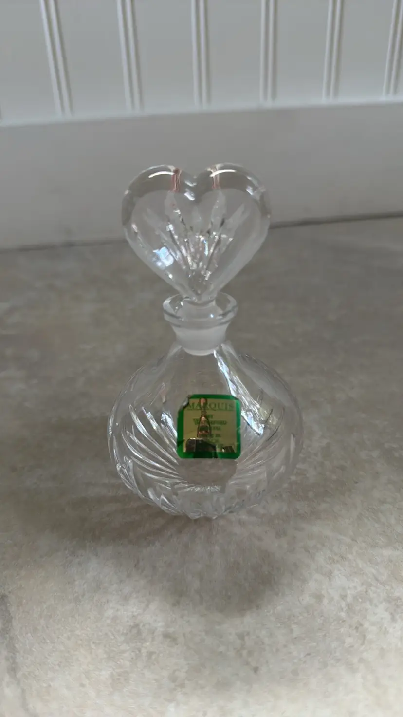 Waterford Crystal Glass Perfume Bottle with heart shaped stopper 4.25” tall with stopper 3” without stopper Original sticker etched signature Charming heart-shaped glass bottle by Waterford Crystal. Ideal for a touch of elegance. Excellent like new condition with no breaks or chips (6826302511)