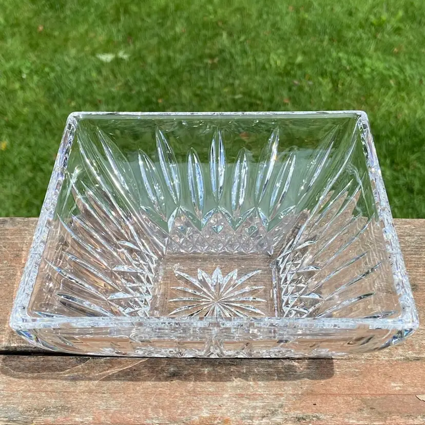 Approx 6” x 6” x 2.75”h. Preowned condition. No chips or cracks. Minimal scratches on bottom. See images as part of description.