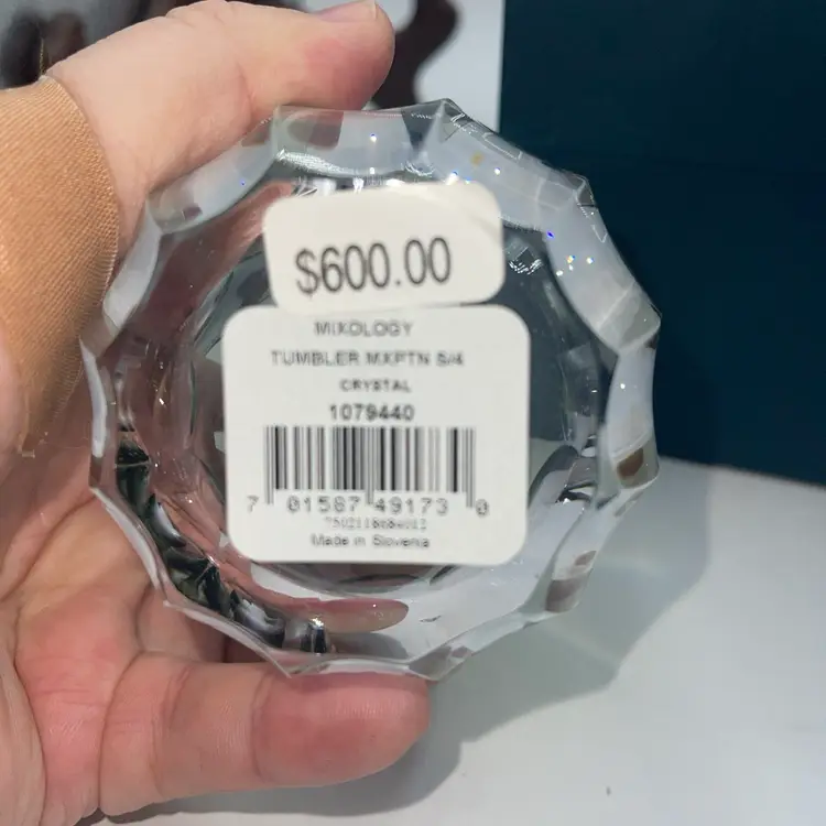 The item number is 107-9440. The tag says Mixology Tumblr MXPTN set of four made in Slovenia. These are brand new in the box. They still have the original tag on them. Please see the photos you’re getting four different designs or patterns and this set with four different colors becoming the original box they are wrapped in bubble wrap. They’ve never been used. Thank you for looking.