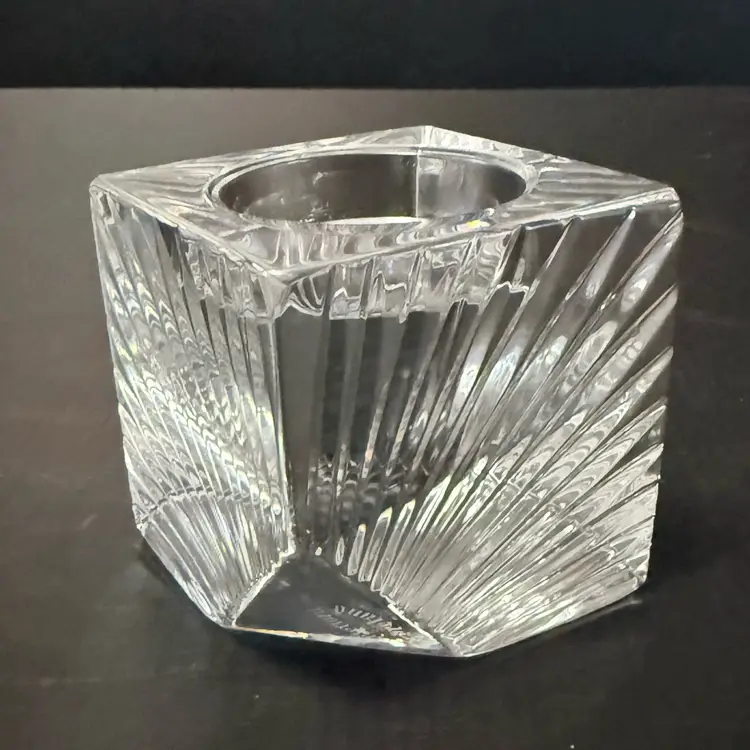 Great Condition no chips or cracks This Waterford was once a clock, clock part is missing so I used it as a tea light candle holder. Measures 2.5” D