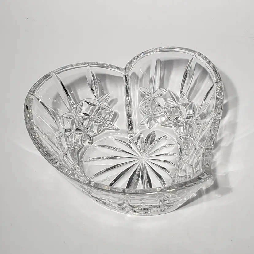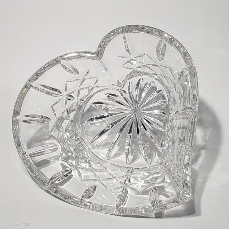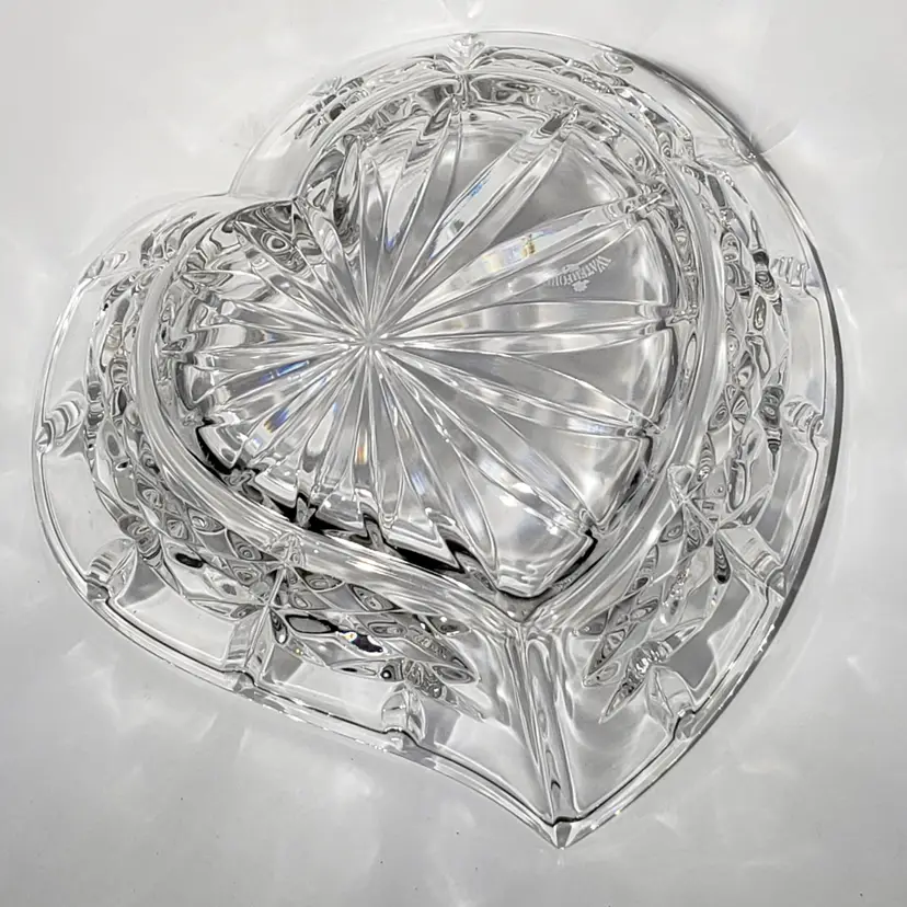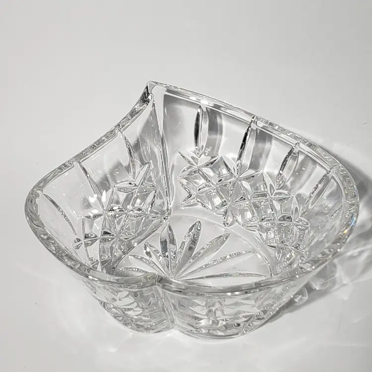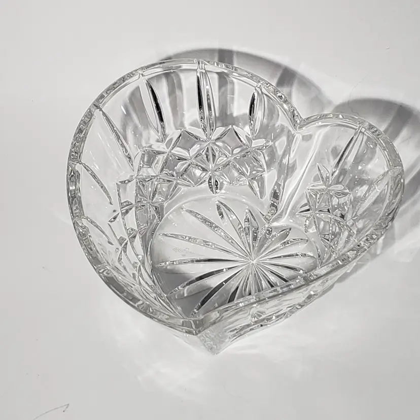 Waterford Crystal Sweetheart 6" Heart Bowl Asymetric Dish Etched Waterford Signature Discontinued Measures: 6.25" x 6.25" x 3" Pre-owned, but like new. No chips or cracks.