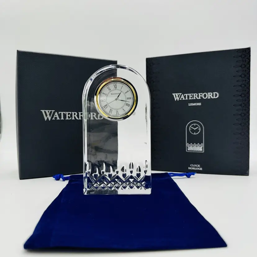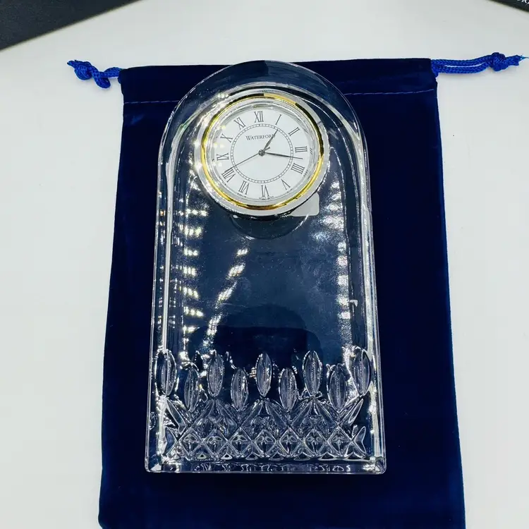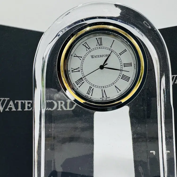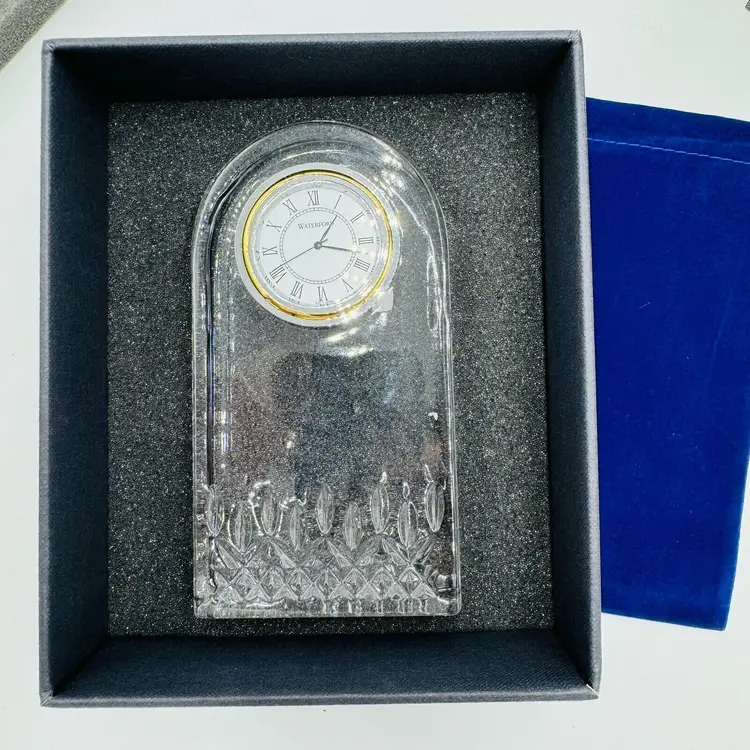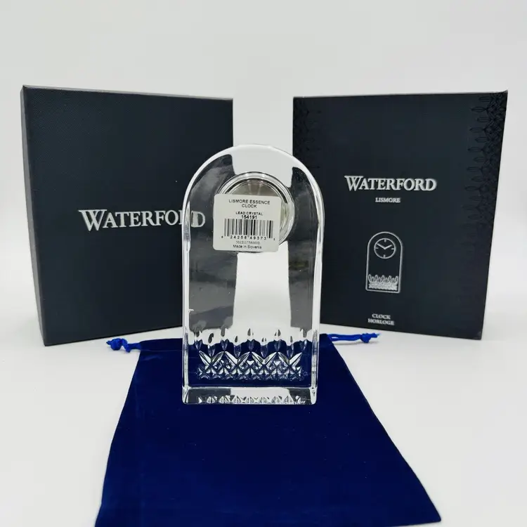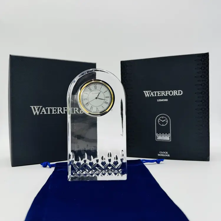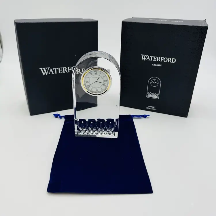 Features: Battery-Operated, Decorative MPN: 154191 Handmade: No Item Width: 2.80 inches Frame Material: Crystal Item Height: 5.5 inches Vintage: Yes Era: 21st Century (2000-Now) Power Source: Battery Country/Region of Manufacture: Slovenia Origin: Slovenia Material: Crystal Model: Waterford 154191 Product Line: Lismore Shape: Rectangular Display Type: Analog Number Type: Roman Numerals Engraved: No Finish: Glossy Production Style: Cut Glass Brand: Waterford Style: Contemporary Antique: No Color: Clear Original/Licensed Reproduction: Original Room: Any Room Backstamp: Incised Type: Desk Clock