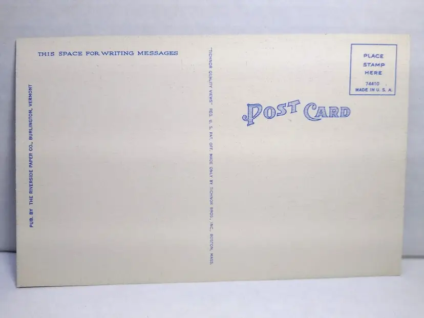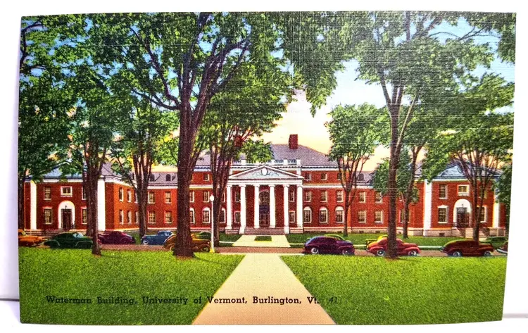 Number of Items in Set: 1 Unit of Sale: Single Unit Artist: Unknown Occasion: Sayings & Quotes Size: Standard (5.5 x 3.5 in) Signed: No Custom Bundle: No Year Manufactured: 1945 Material: Paper City: Burlington Original/Licensed Reprint: Original Franchise: None Brand/Publisher: Tichnor Brothers Subject: Universities Continent: North America Type: Linen Postcard Era: Linen (1930-1945) Region: Vermont Country: USA Theme: Agriculture, Architecture, Universities, Buildings, Cars, Trees Features: Divided Back Time Period Manufactured: 1930's-1950's Country/Region of Manufacture: United States Postage Condition: Unposted