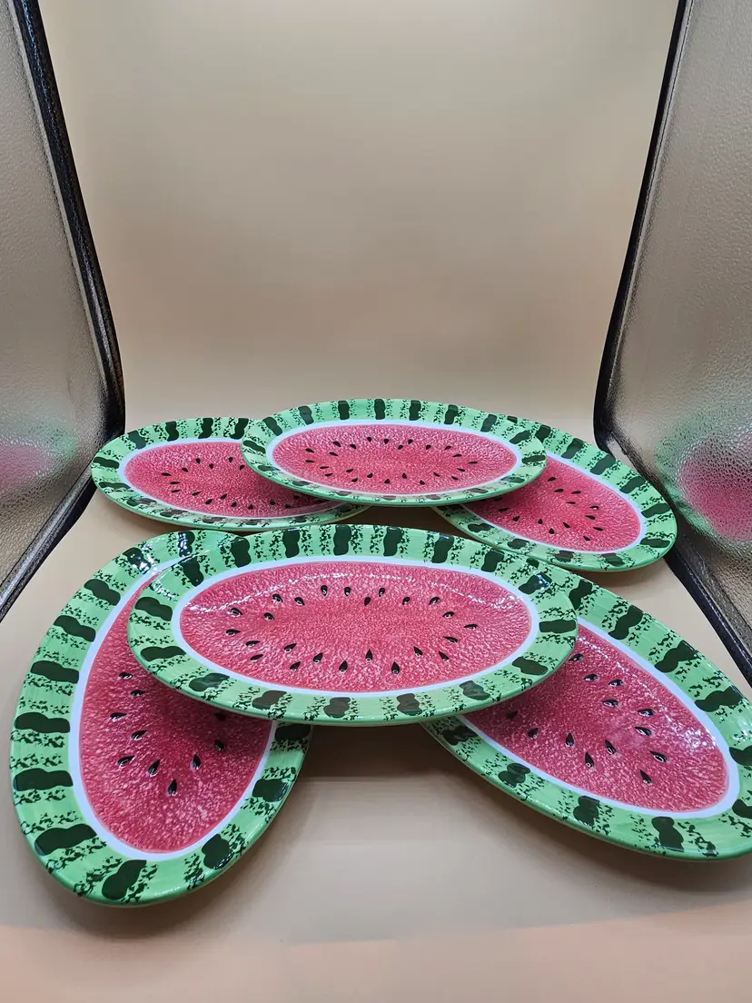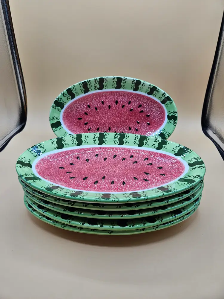 Watermelon 6 Oval Plates, Vtg Linen-N-Things, 10.25" X 6.5"
