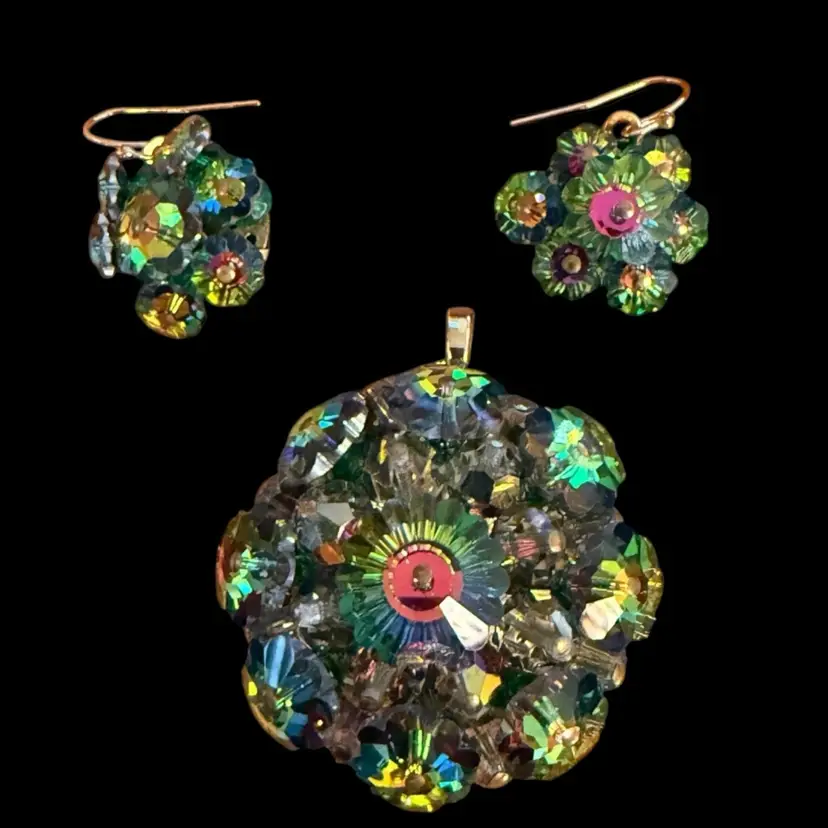 Appears to be a brooch and clip on earrings that were very well converted. Some bending.