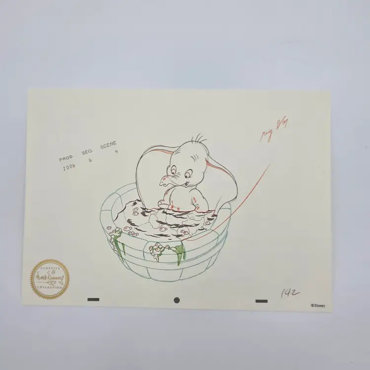 Celebrate the artistry of Disney with this complete Walt Disney Classics Collection (WDCC) Dumbo sculpture set. Issued in 1995 as the exclusive Walt Disney Collectors Society (WDCS) Membership Gift Figurine, “Simply Adorable” captures Dumbo’s playful innocence as he splashes in his bath.