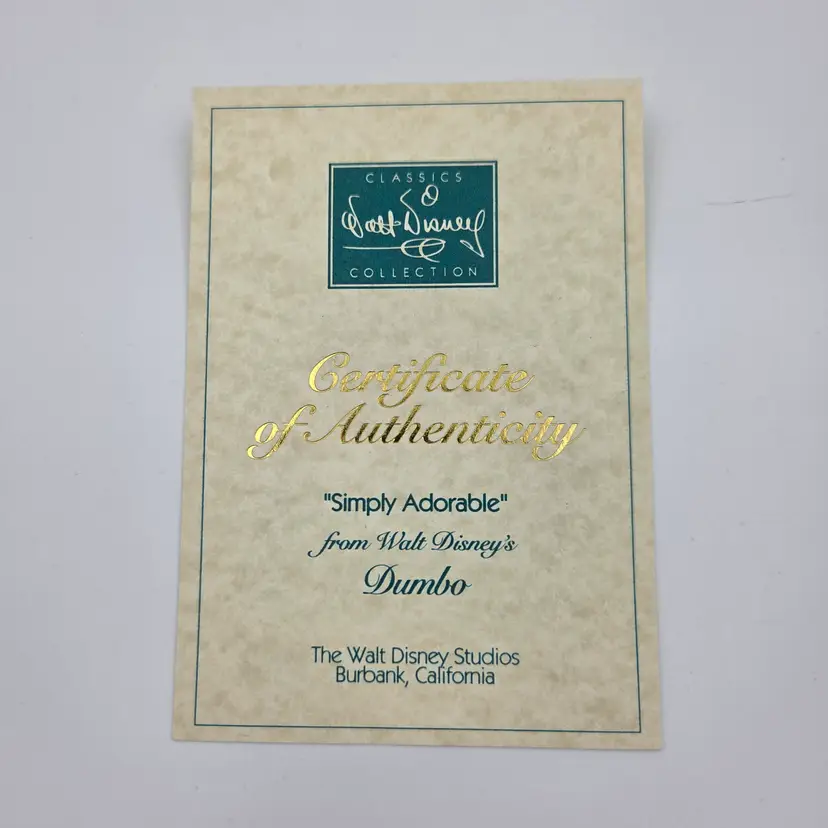 • WDCC Dumbo Simply Adorable • WDCC Dumbo 1995 Membership Gift • Walt Disney Collectors Society Dumbo • Disney Dumbo sculpture with COA • WDCC Dumbo figurine with art print • WDCC Dumbo original membership paperwork • WDCC Dumbo Club Exclusive