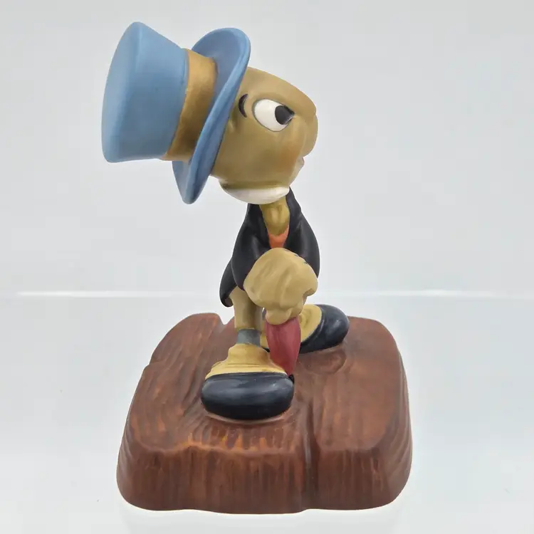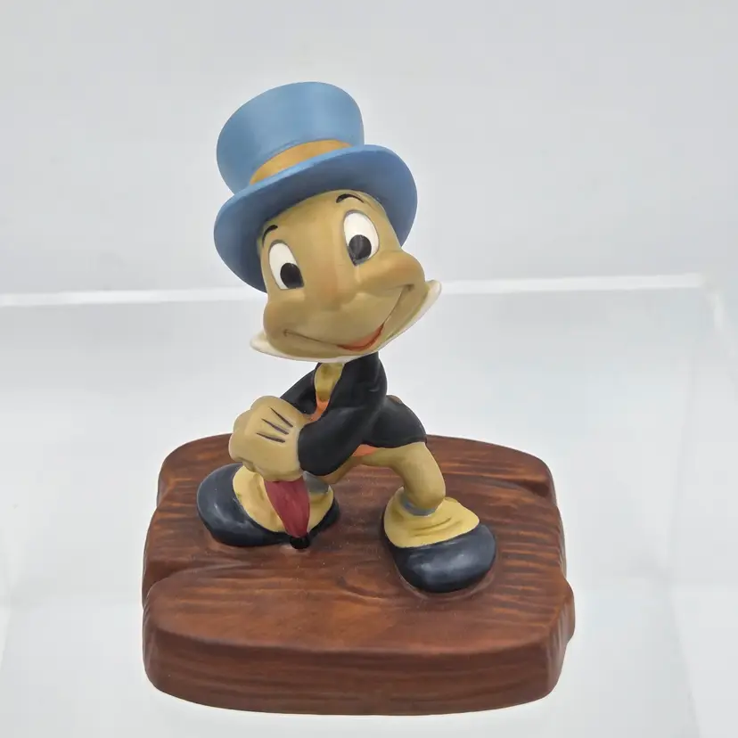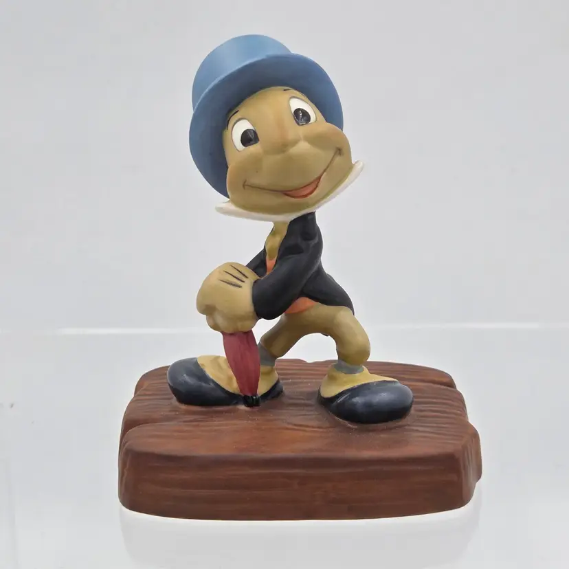 Step into the magic of Disney with this Walt Disney Classics Collection (WDCC) Jiminy Cricket figurine, “Cricket’s the name – Jiminy Cricket!” Released in 1993 as the exclusive Charter Year Membership Gift Figurine for the Walt Disney Collectors Society (WDCS), this charming piece captures Jiminy in his signature top hat and carrying his umbrella, symbolizing wisdom, integrity, and hope from Pinocchio.