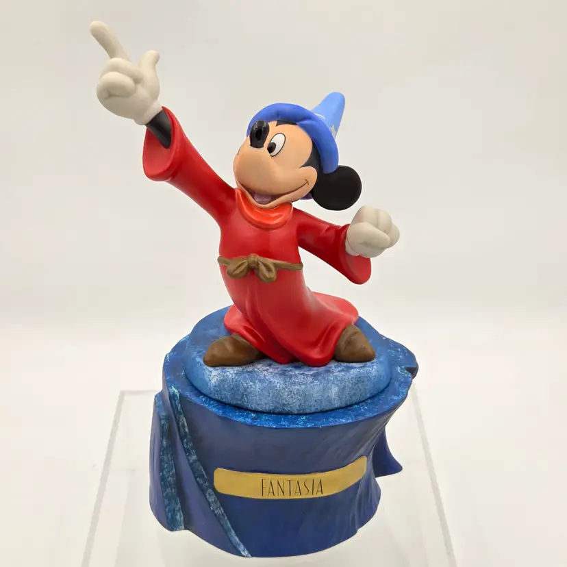 In the magical world of Fantasia, Mickey Mouse dons his sorcerer's hat, poised to summon the stars. This enchanting sculpture captures the essence of wonder and imagination, inviting admirers to relive the spellbinding moments of Disney's classic. A timeless piece that celebrates Mickey's illustrious journey through the ages.