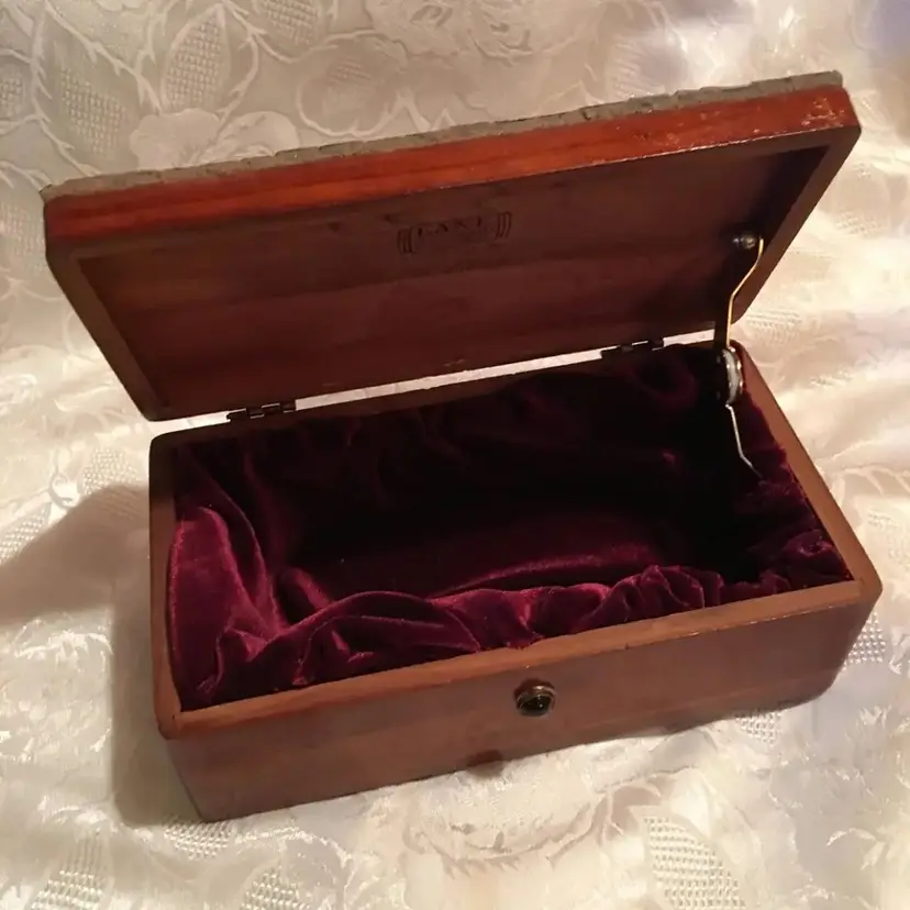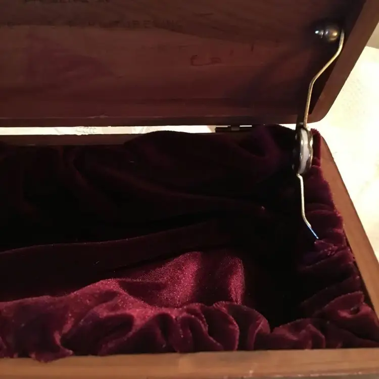 Lining: Lined with burgundy velvet