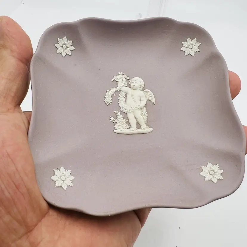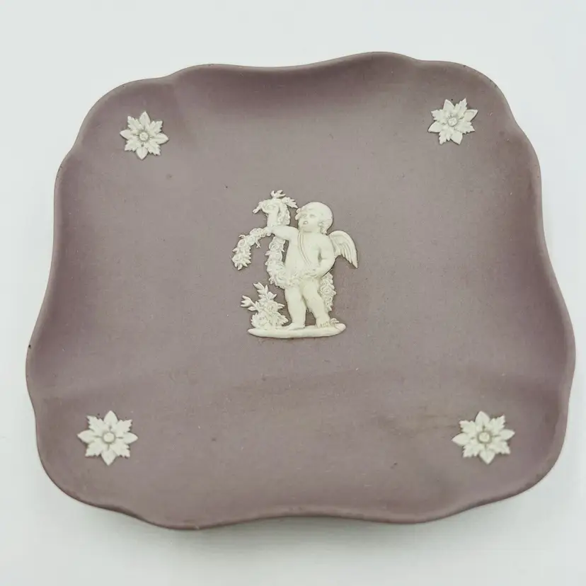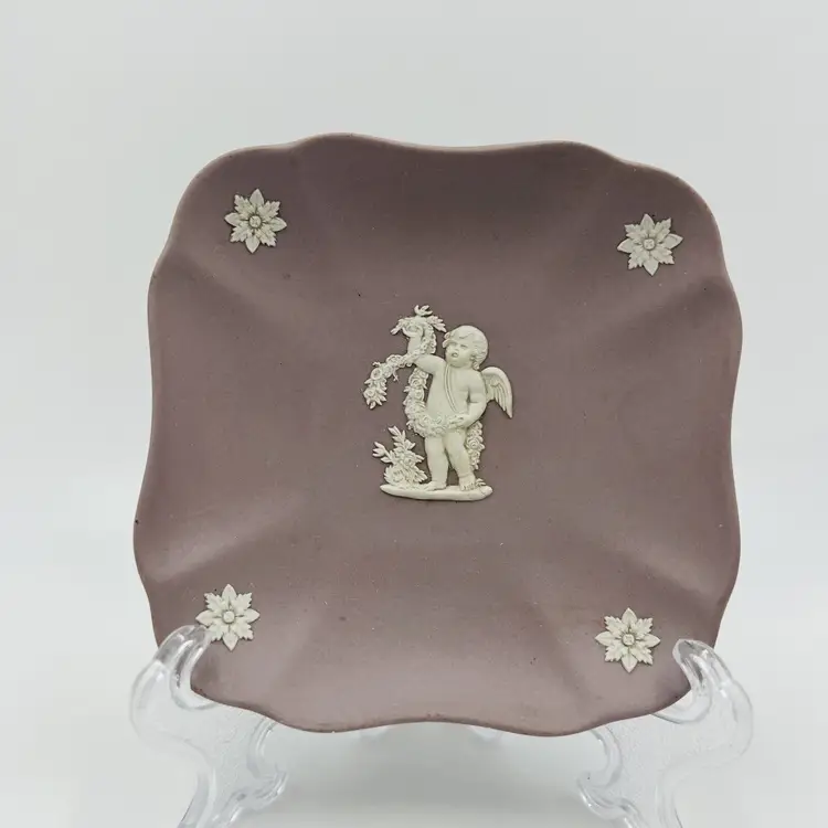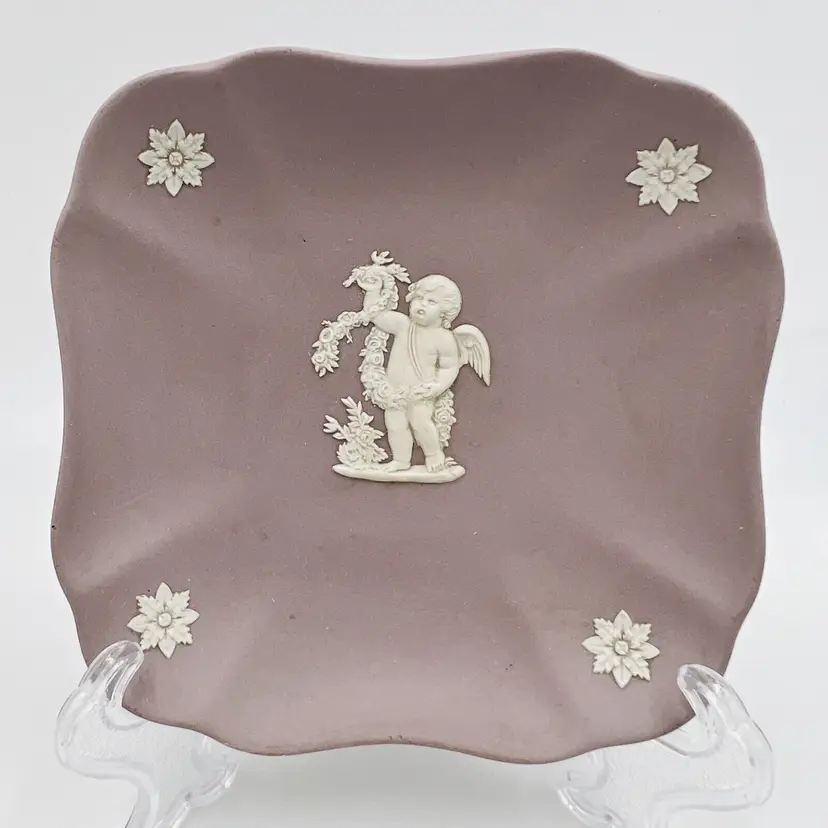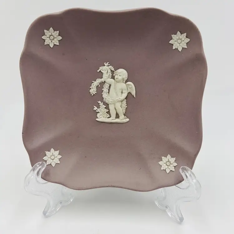 Origin: Wedgwood Antique: No Shape: Square Occasion: All Occasions Custom Bundle: No Year Manufactured: 1990 MPN: N/A Vintage: Yes Style: Cupid Features: decorative Production Style: Jasperware Finish: Matte Handmade: No Culture: British Pattern: Cherub Character: Cupid Color: Lilac Item Diameter: See Description Material: Jasperware Franchise: Wedgwood Brand: Wedgwood Type: Collector Plate Era: Late 20th Century (1970-1999) Theme: Cupid Time Period Manufactured: 1990-1999 Production Technique: Jasperware Country/Region of Manufacture: United Kingdom Backstamp: Impressed Item Weight: See Description Product Line: Jasperware