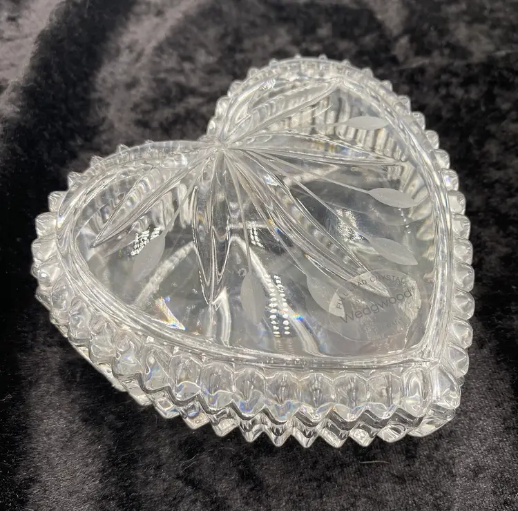 Wedgwood Full Lead Crystal Heart-Shaped Trinket/Jewelry Box, Germany, w/Sticker