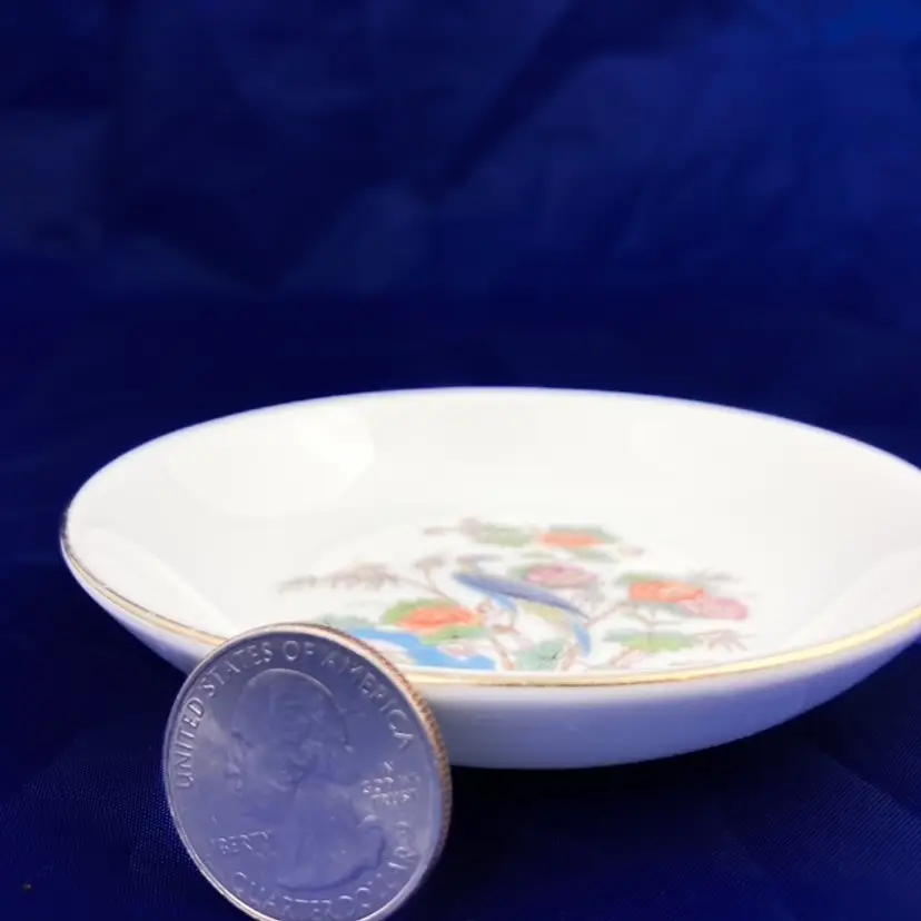 This 1971 Bone China Wedgwood dish measures 4" across and has gilded edges. Pre-owned with minor wear, no chips or cracks. mart81