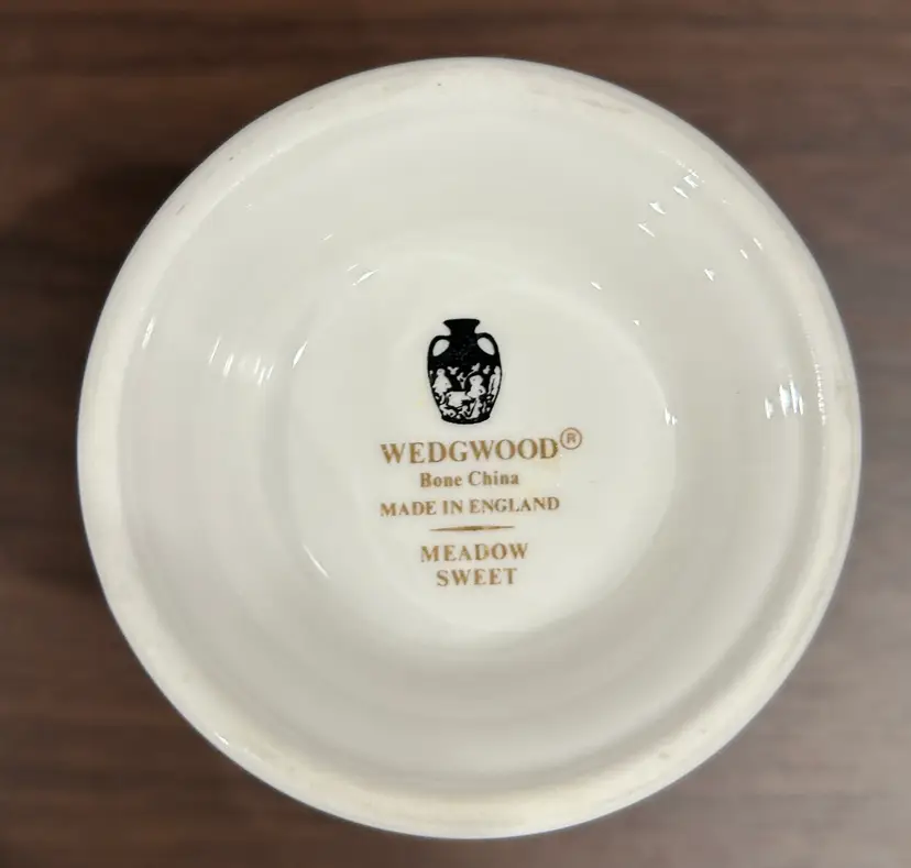 Wedgwood Meadow Sweet bud vase. No chips, no cracks. One small black mark by bottom edge as seen in photos. Beautiful vase in excellent condition.