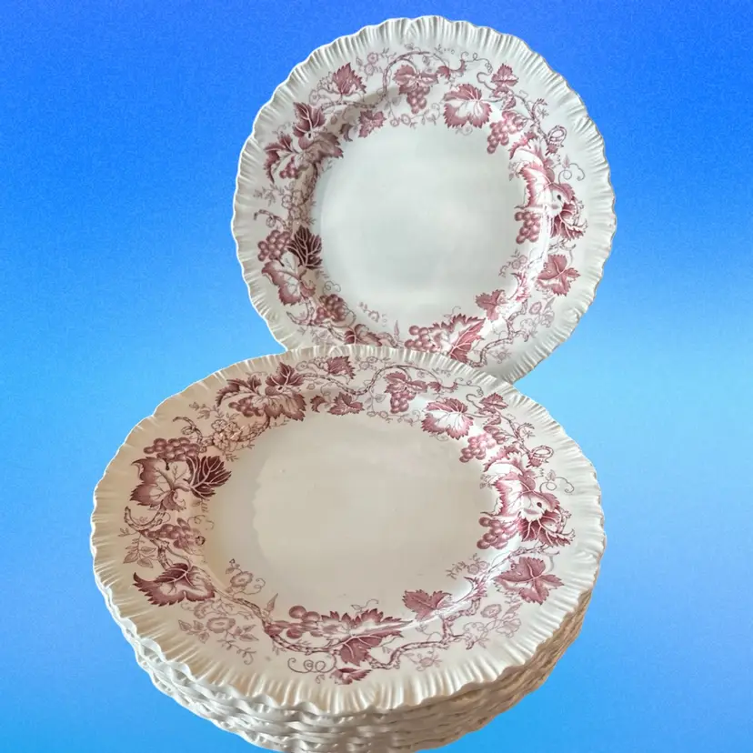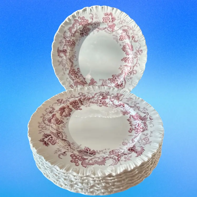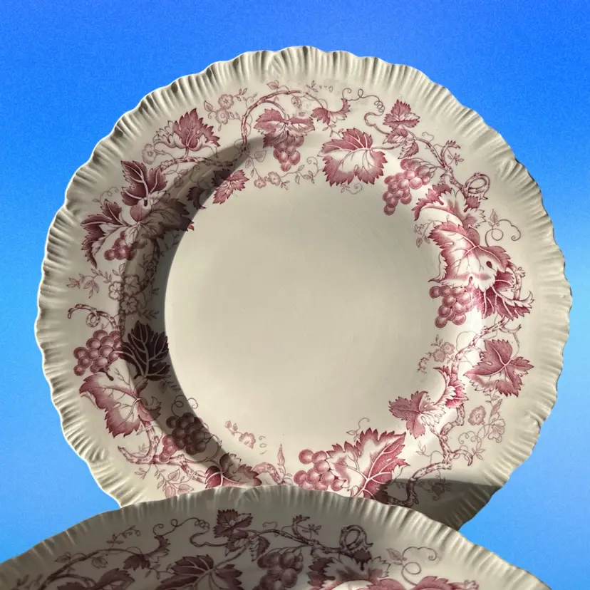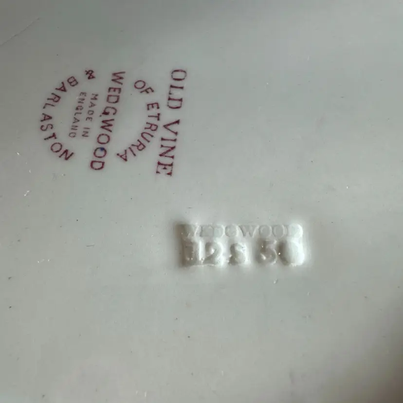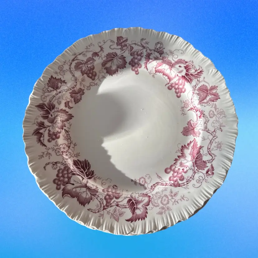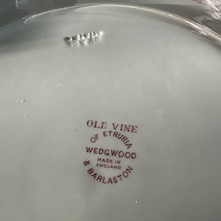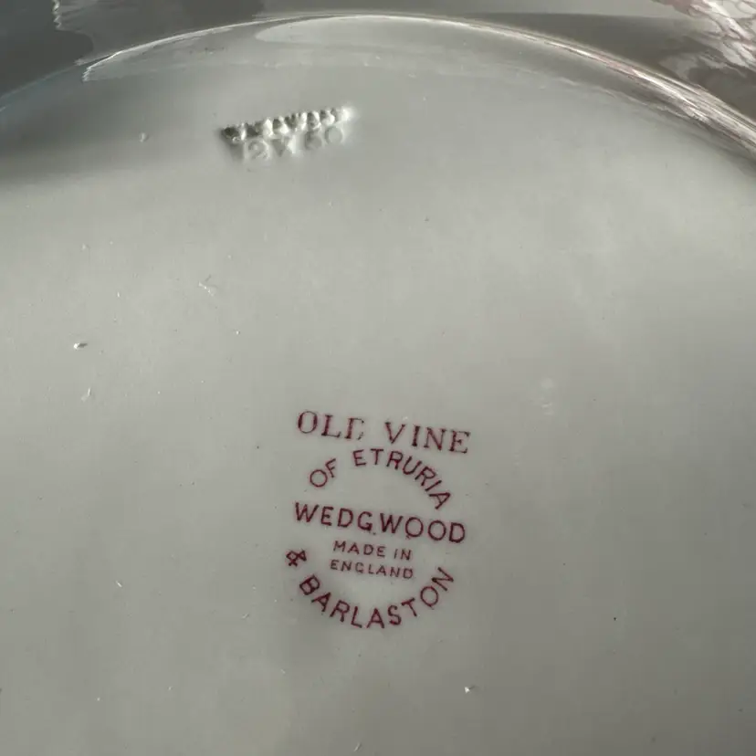 The Wedgwood Old Vine of Etruria 10 2/8” Purple Mulberry Dinner Plate is a vintage piece of porcelain dinnerware from England. This round plate features the Old Vine pattern and is stamped with the brand name Wedgewood. It is part of the Wedgwood product line and was manufactured in the 1950s, making it a unique and collectible item for all occasions. Hand wash only to preserve its original charm and vintage appeal.