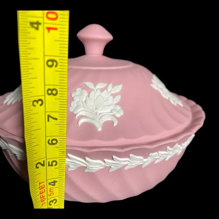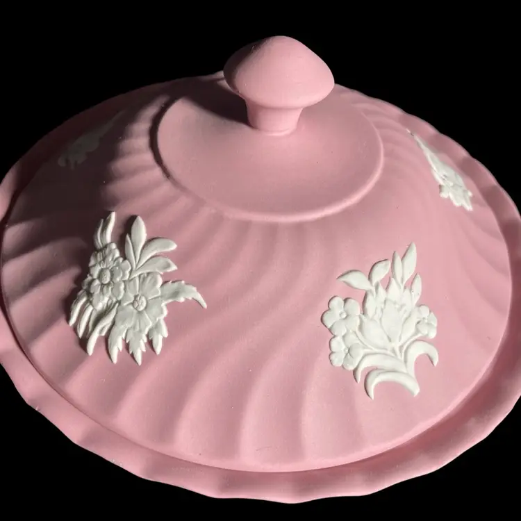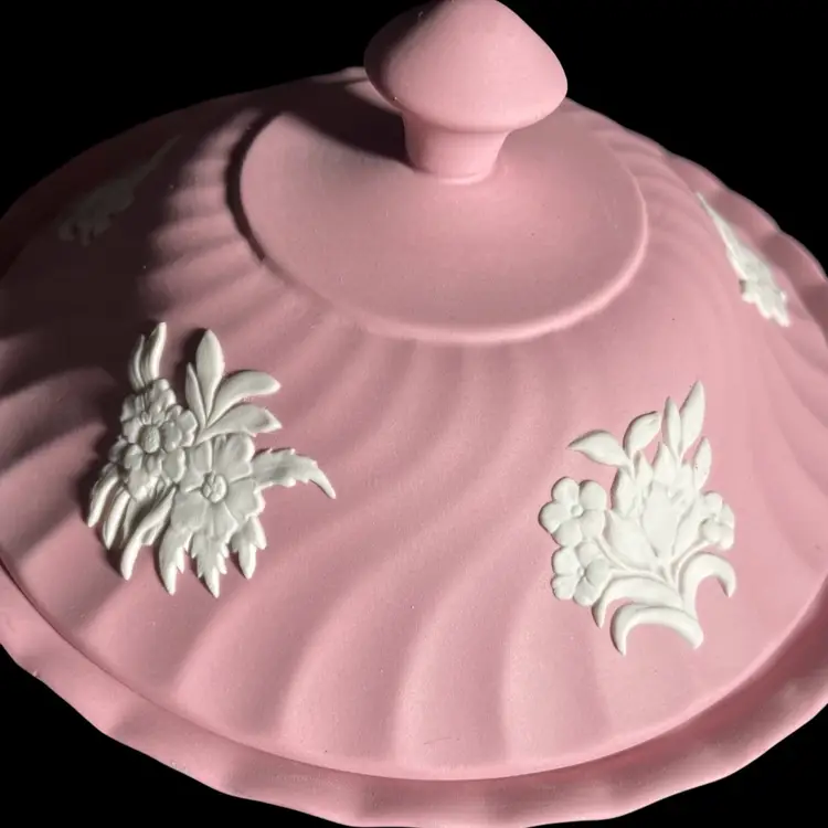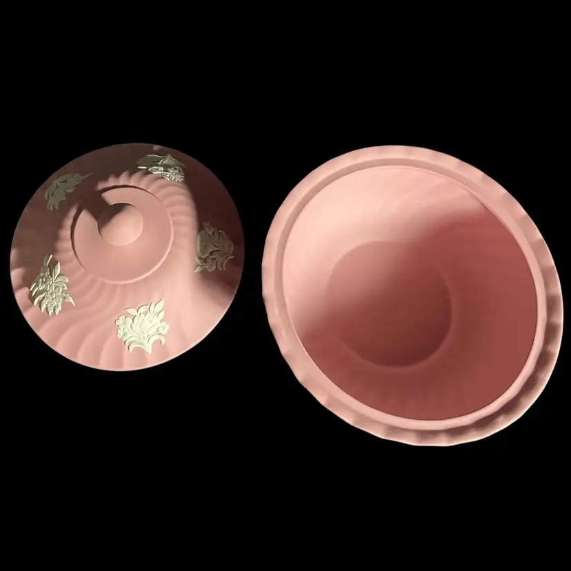 Wedgwood Pink Jasperware Powder Dish and Lid Fluted. Condition is Used. Shipped with USPS Mail