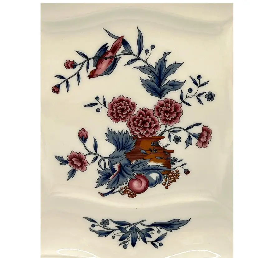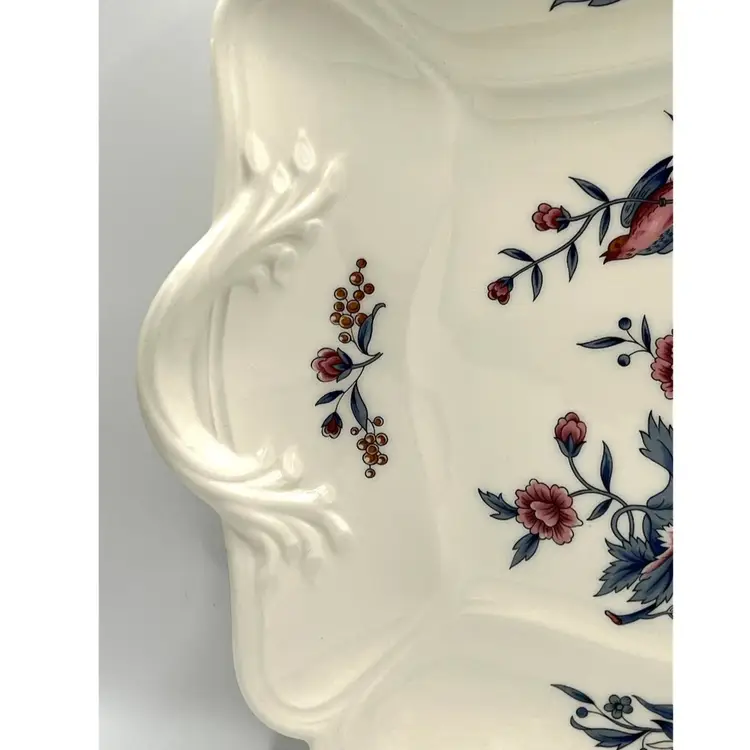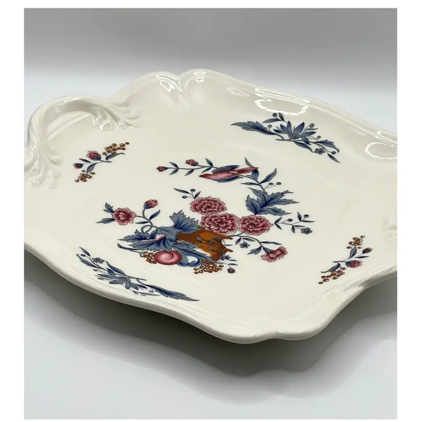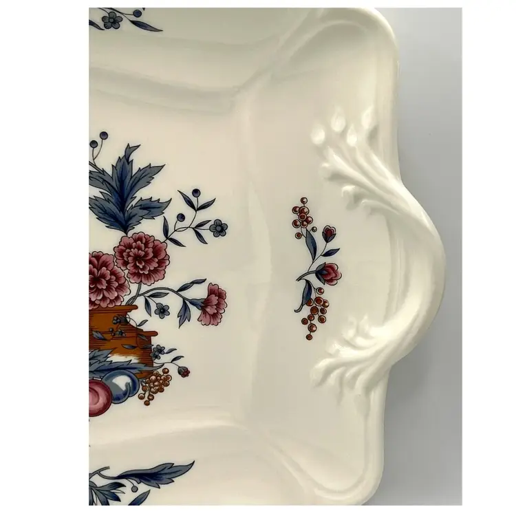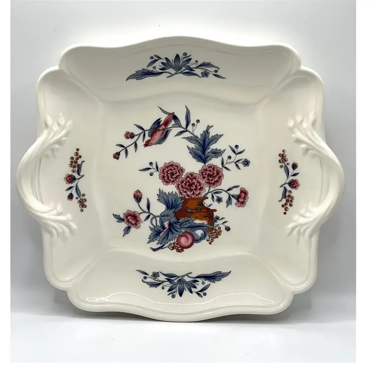 Wedgwood Williamsburg Etruria & Barlaston Potpourri Flowers Bird Square Salad Plate 10x10 in. No chips/cracks