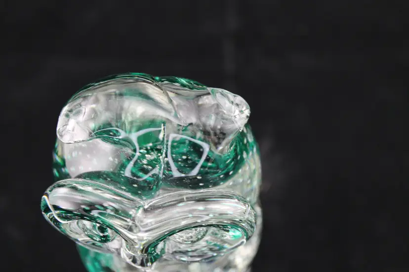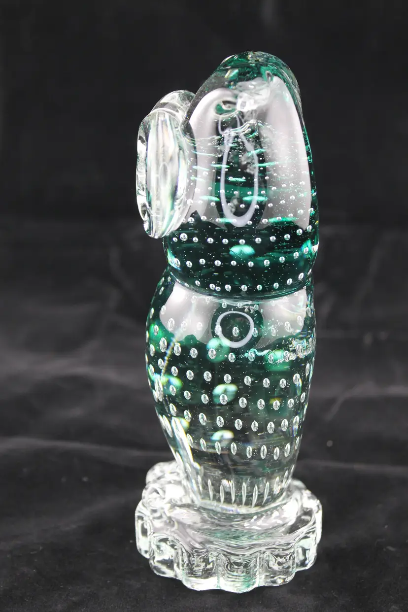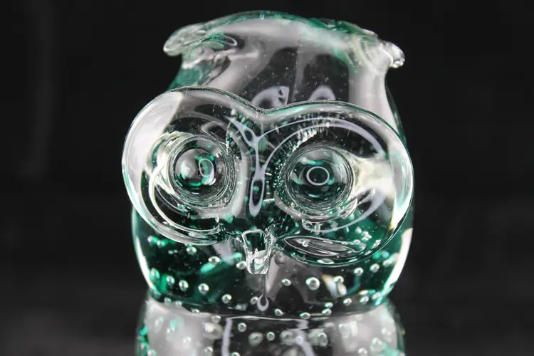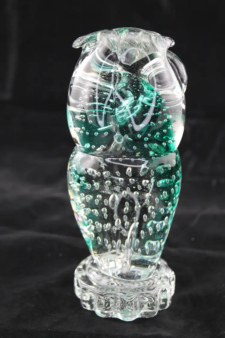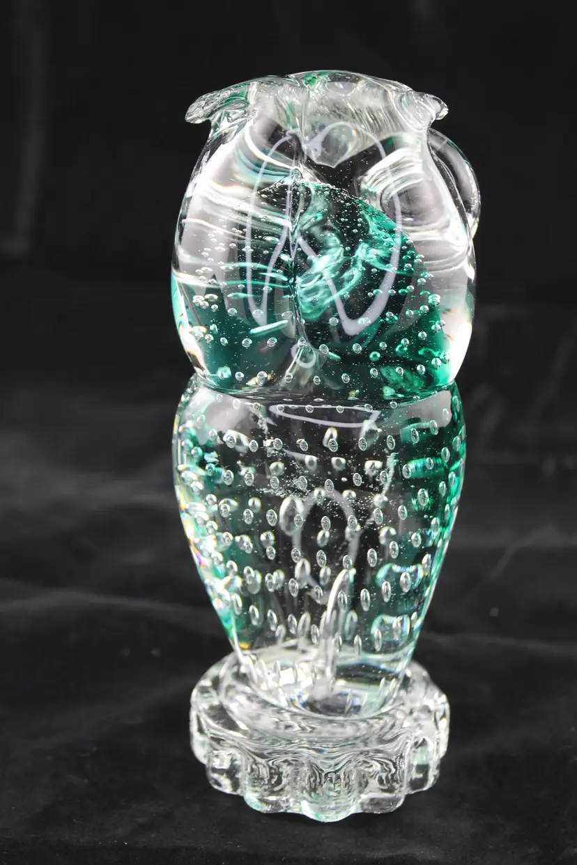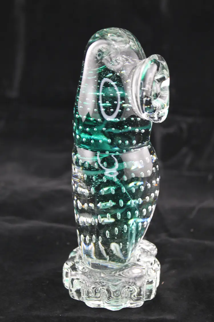 This is a hand blown art glass owl. there are no makers marks or labels. It measures approx 6 1/4" tall and 2 3/8" across the bottom