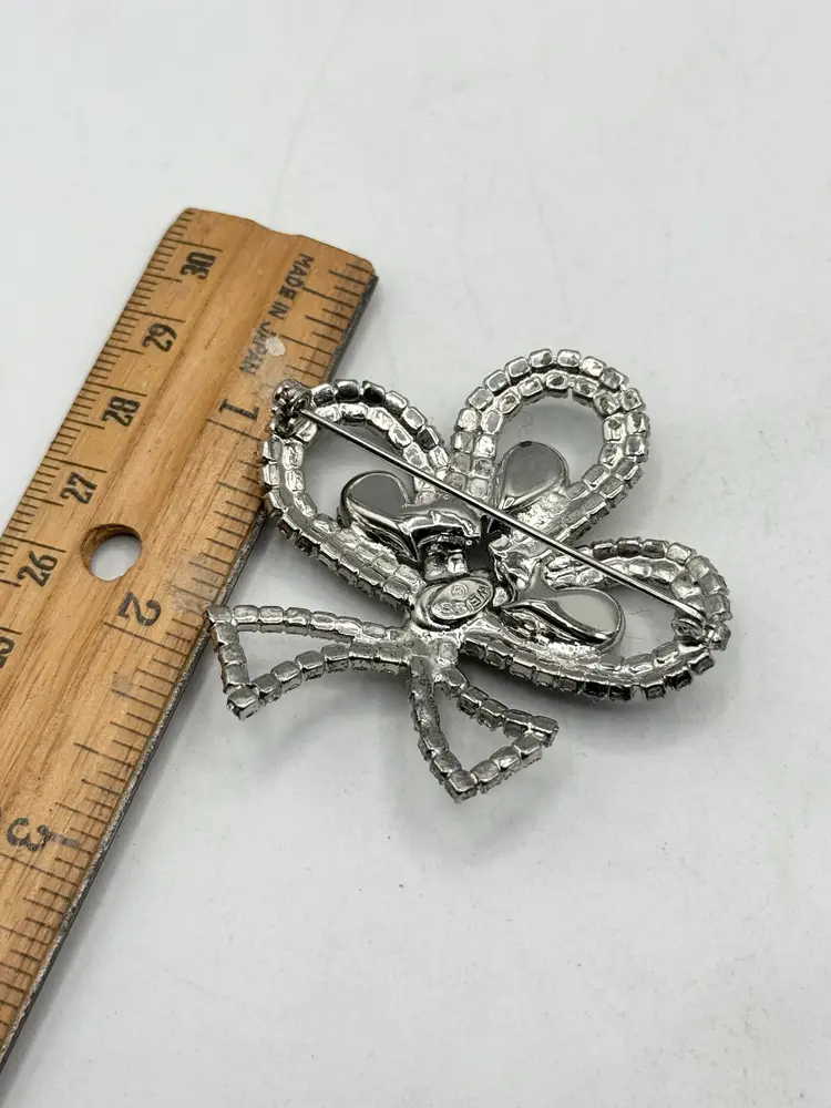 Weiss vintage glass rhinestone brooch pin. Unique shape. Prong set glass rhinestones. Signed Weiss. Vintage brooch pin. MN54GH.