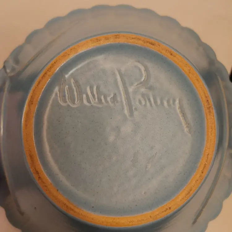 Welker Pottery Bowl. Vintage. "Darcie Cords" pattern with tassel accents. 9 in diameter. No chips.