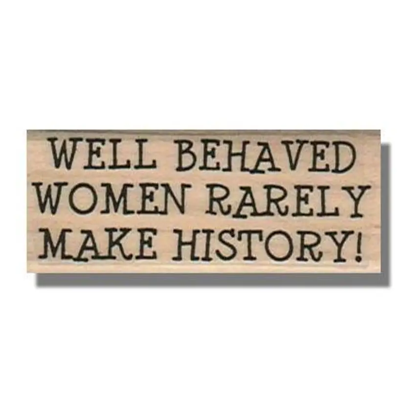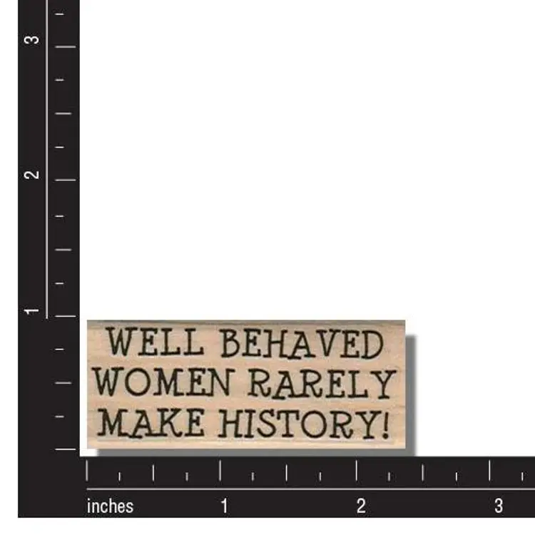 Well Behaved Women Rarely Make History Rubber Stamp Size: 1 x 2-1/4 Red Rubber • Handmade • Great for junk journals, mixed media projects, collage, card making and tags.