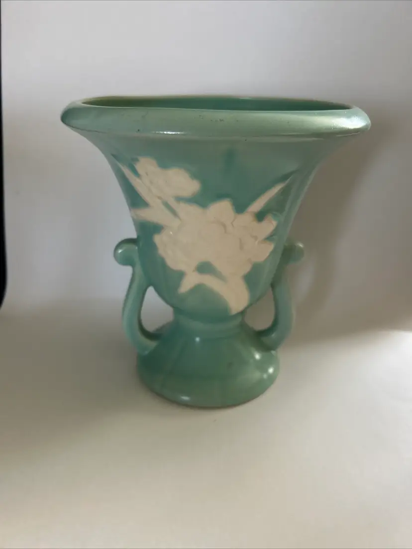 Beautiful Weller Pottery Vase. Has a few flea bites ( see photo) but otherwise in great condition with no chips, cracks or stains. Measures 7 inches tall.