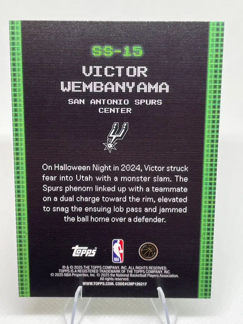 2025-26 Topps Basketball Blackout Exclusive Victor Wembanyama ‘SCAN & SLAM’ SP Insert Numbered 01/99 Blackout Shimmer Jersey # Match, Color Match & First On Print!