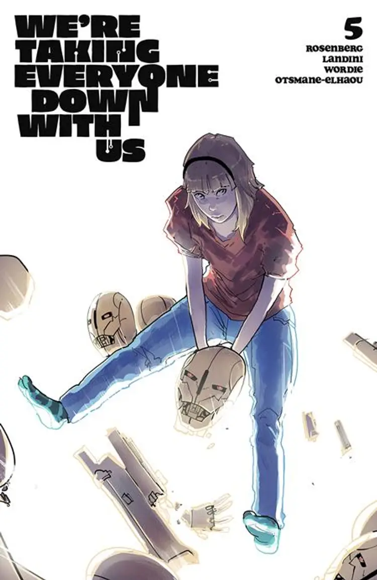 Betrayal! Despite a heroic sacrifice intended to buy her freedom from V.E.I.L., Annalise has become a prisoner in Chuma Castle. Now she must face her greatest challenge yet—Etiquette Classes! The spy thriller slash touching family saga from MATTHEW ROSENBERG (WHAT'S THE FURTHEST PLACE FROM HERE?) and STEFANO LANDINI (Prodigy: Slaves of Mars) nears its unpredictable conclusion—and you’ll never guess what’s coming. Because it’s unpredictable.