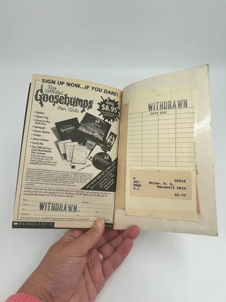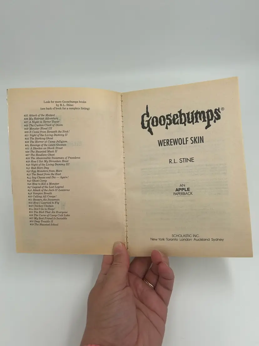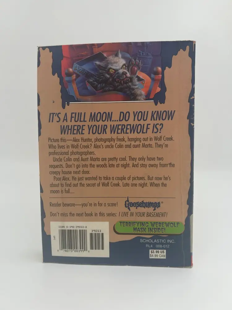 Dive into the world of R.L. Stine's "Werewolf Skin," the captivating 60th installment of the renowned Goosebumps series. No mask is included in this particular copy. However, original advertisements are inside the book and in good condition. This copy was withdrawn from a library. There is markings inside the book and are included in the listings photos. Most of the markings are from a pencil and can be erased. #60 is one of the rare stories in the Goosebumps Series as there was only a limited amount of copies published and sold.