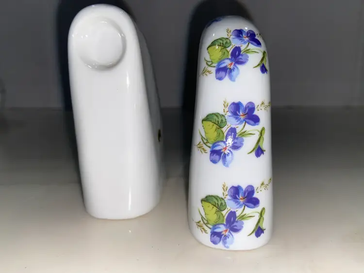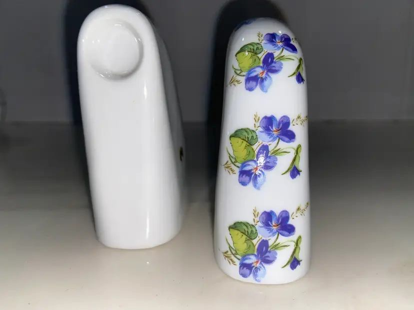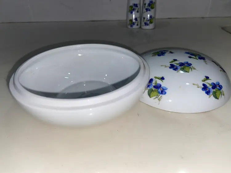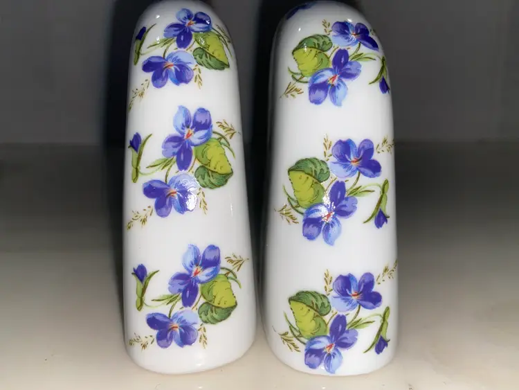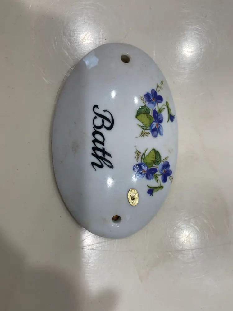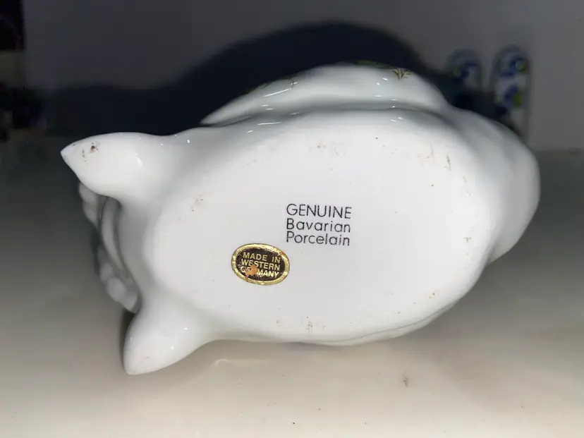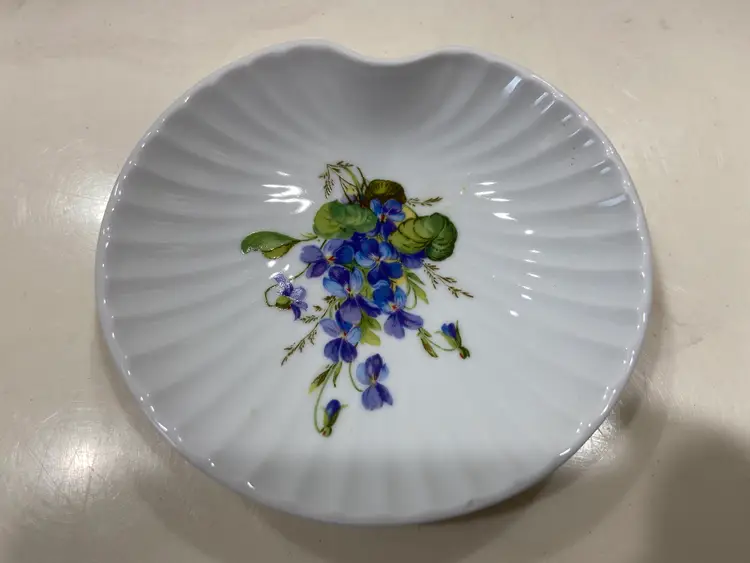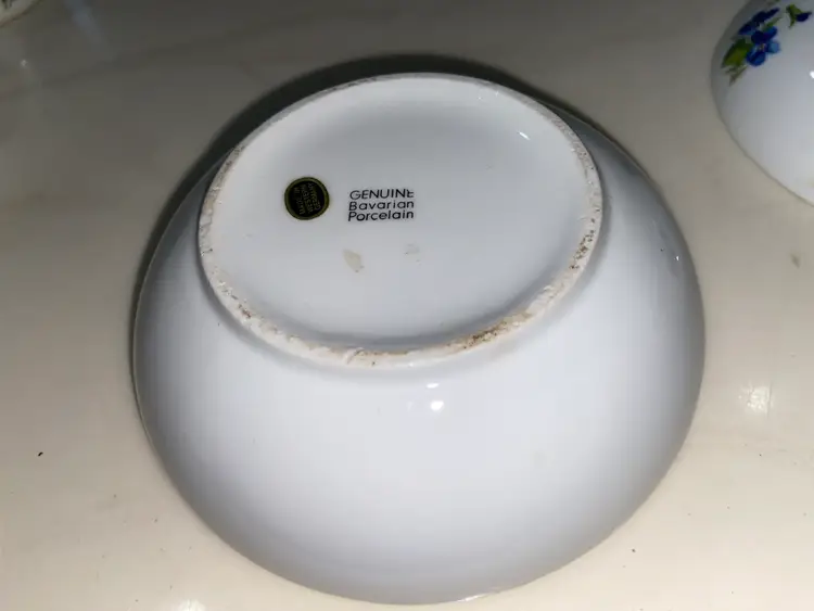 WEST Germany Barvarian Porcelain Bath Set Violets soap dish, toothbrush holder, trinket swan dish, bath wall plaque, small covered bowl, toilet paper holder