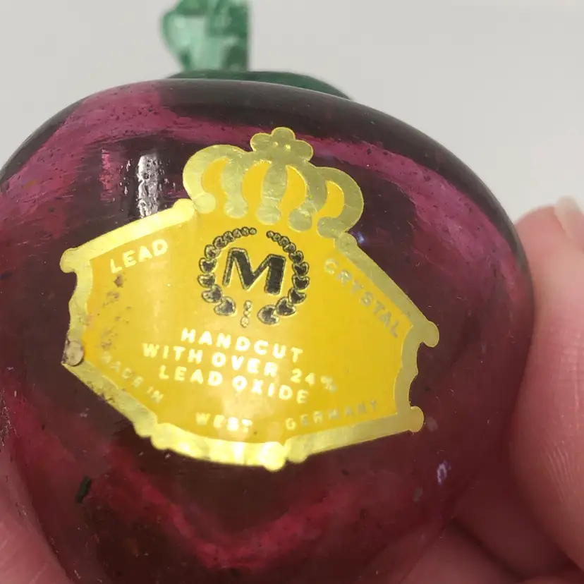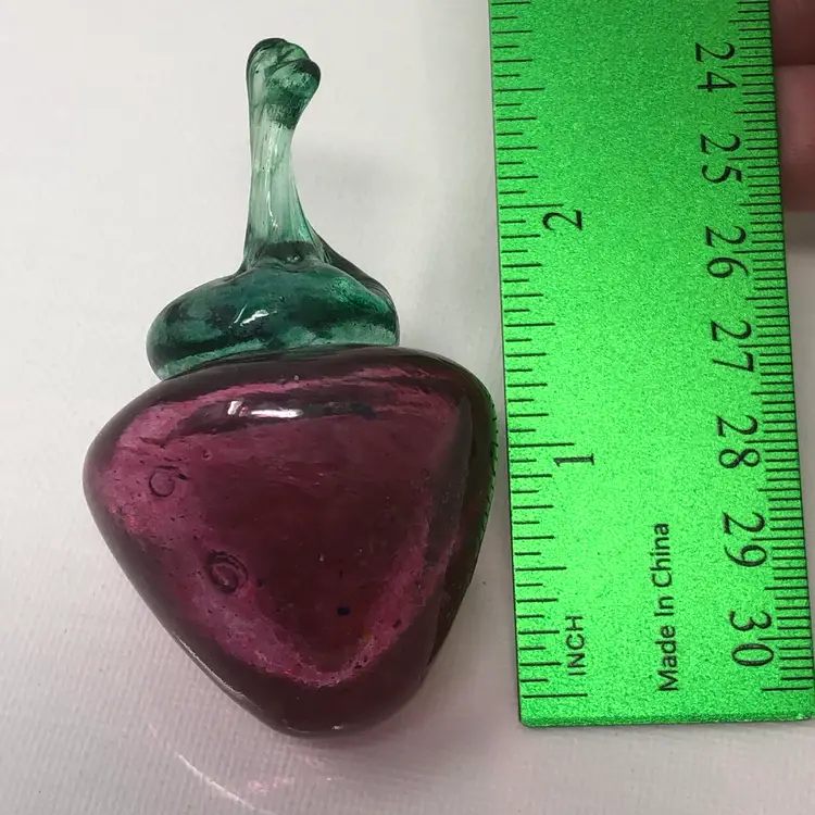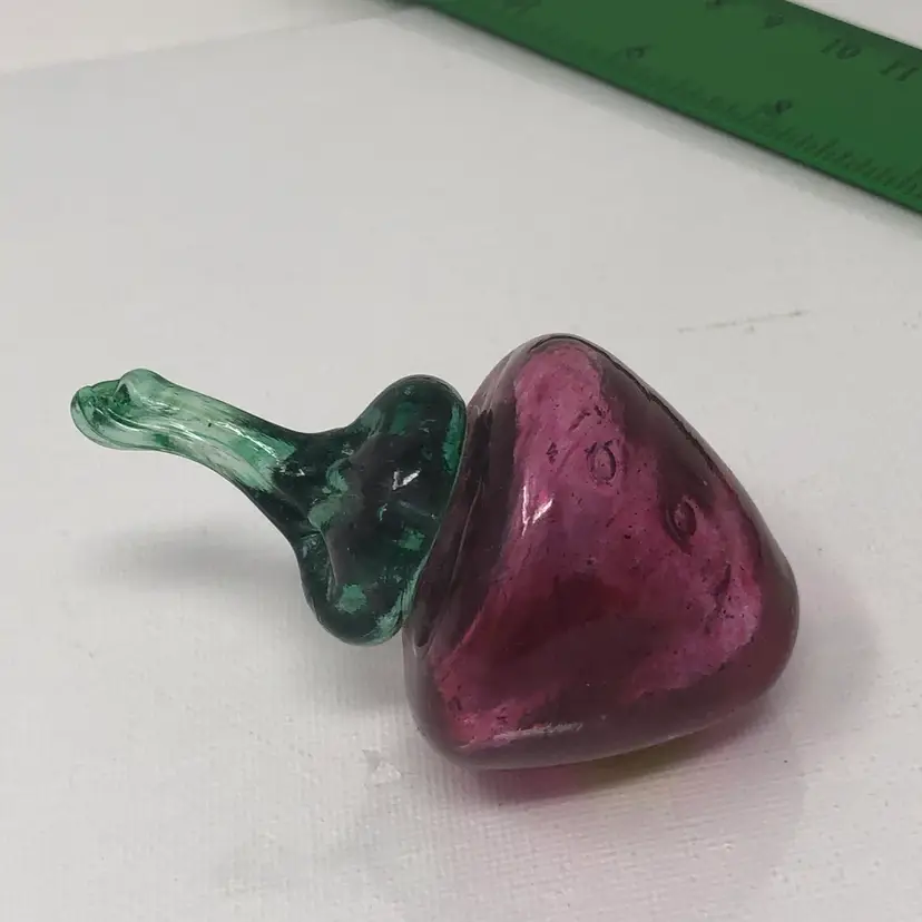 3" glass strawberry with green stem. Original label Made in West Germany. No chips or cracks