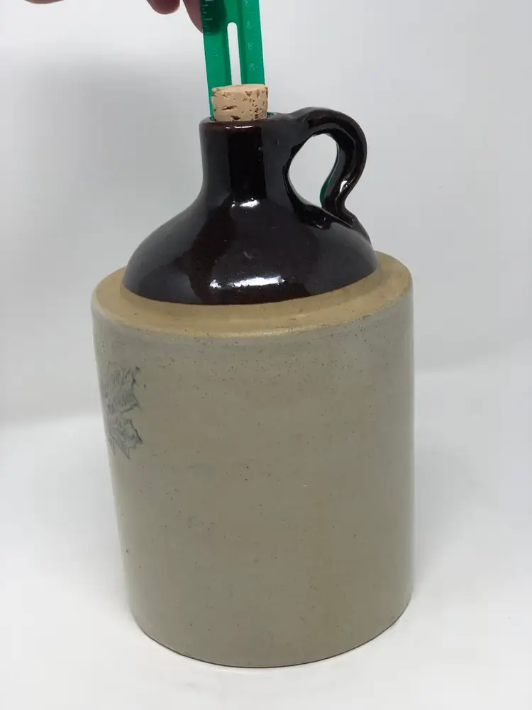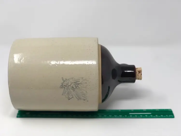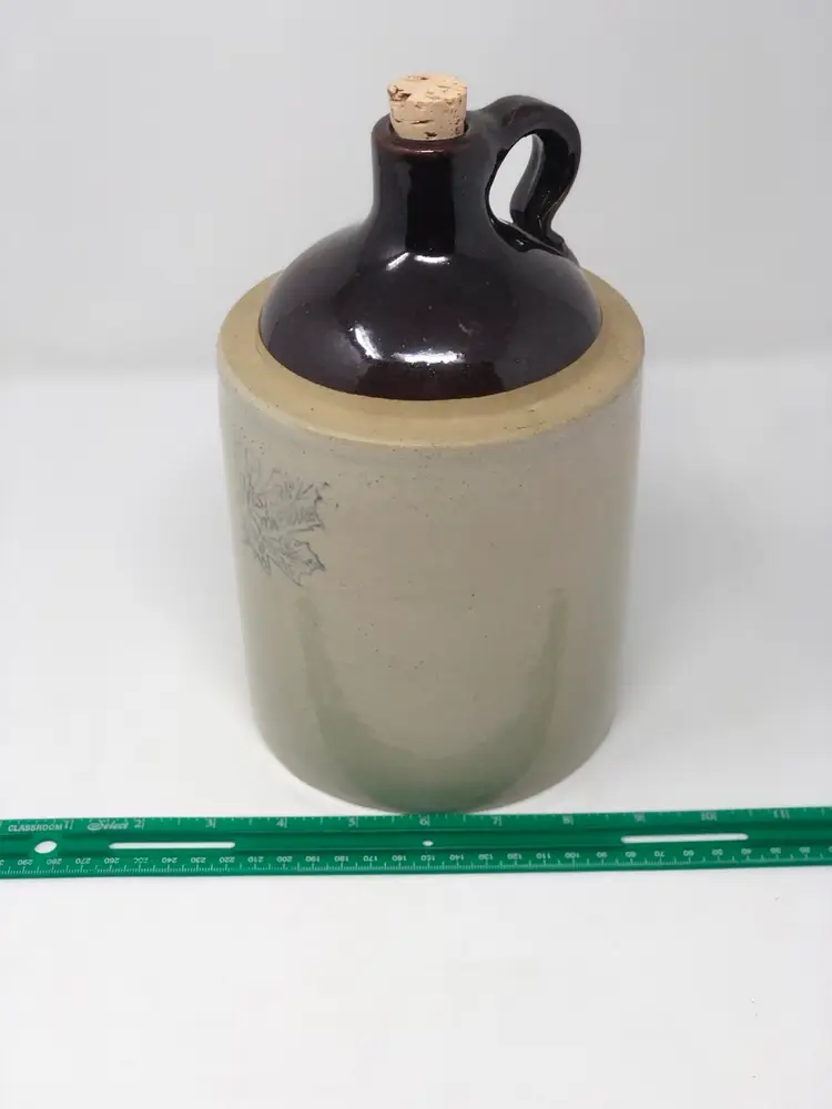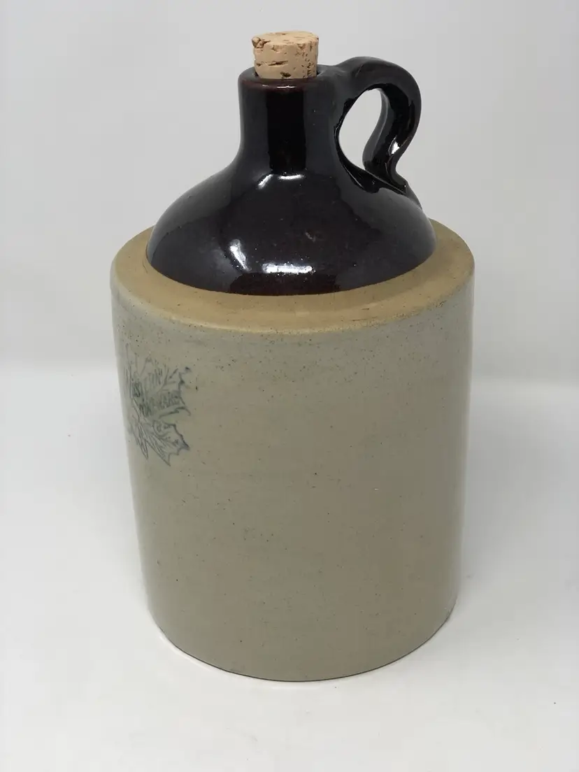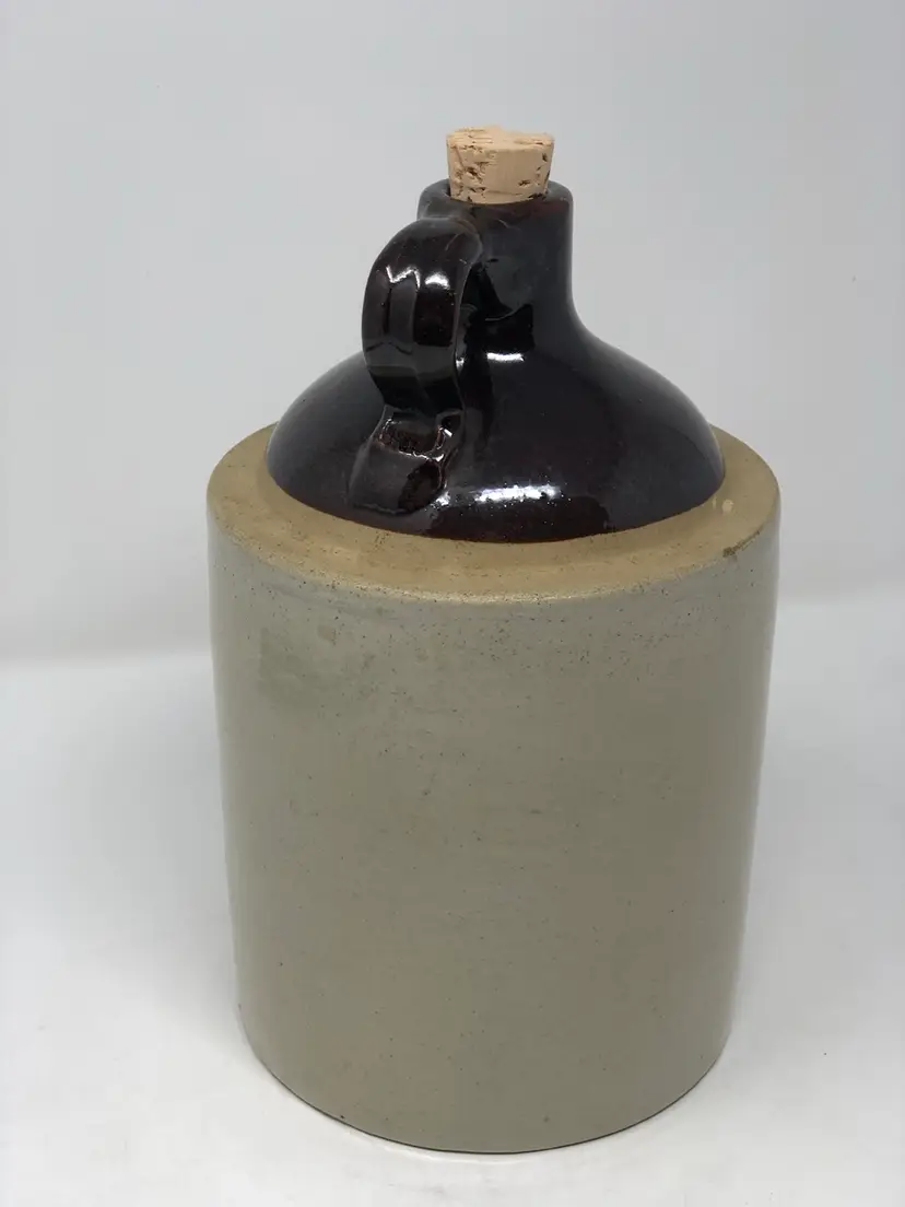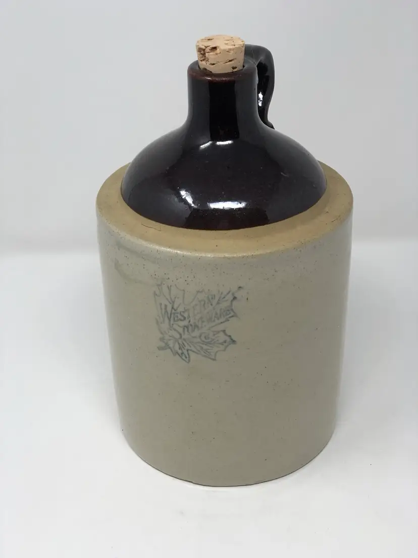Western Stoneware jug made in Monmouth, Illinois stands 10” tall. Comes with cork, no chips or cracks as shown in photos