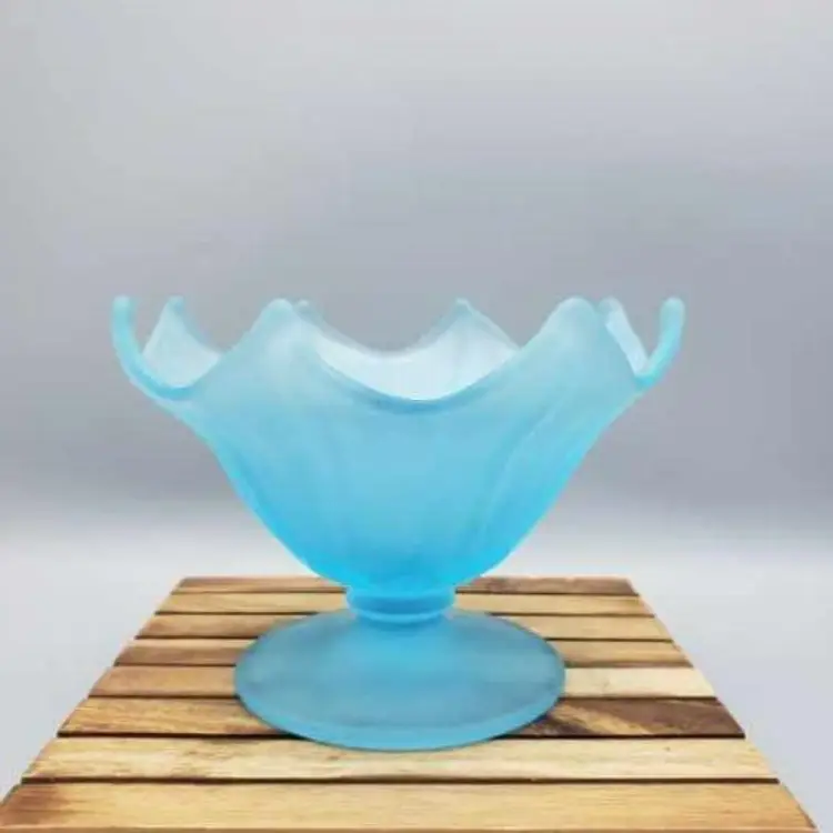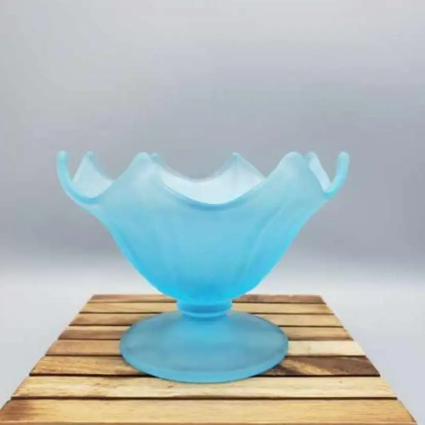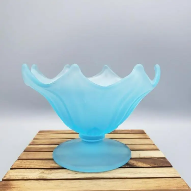 Charming vintage Westmoreland blue mist satin glass pedestal compote. Perfect for adding a touch of elegance to your decor or for serving treats. Measures approx. 4-3/8” H x 6-1/4” at widest point. In excellent condition with no chips or cracks.