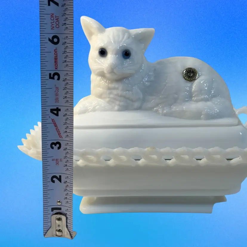 Condition: No chips, cracks, or flea bites. Manufacturing condition: Two points on tips of lace that are discolored. One small black speck located on the top of the cover, near the cat’s tail. Measurement: Approximately 6.5” T x 8” L x 5” W. N11-12 Thank you for looking!