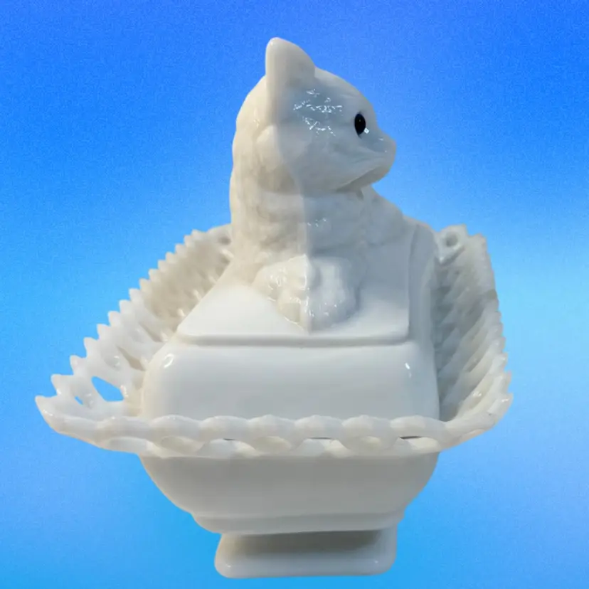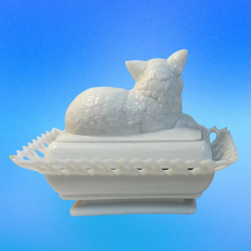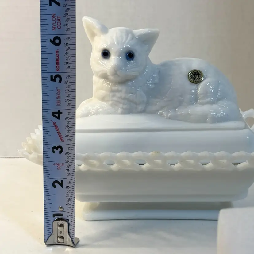 Condition: No chips, cracks, or flea bites. Manufacturing condition: Two points on tips of lace that are discolored. One small black speck located on the top of the cover, near the cat’s tail. Measurement: Approximately 6.5” T x 8” L x 5” W. N11-12 Thank you for looking!