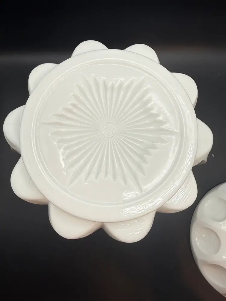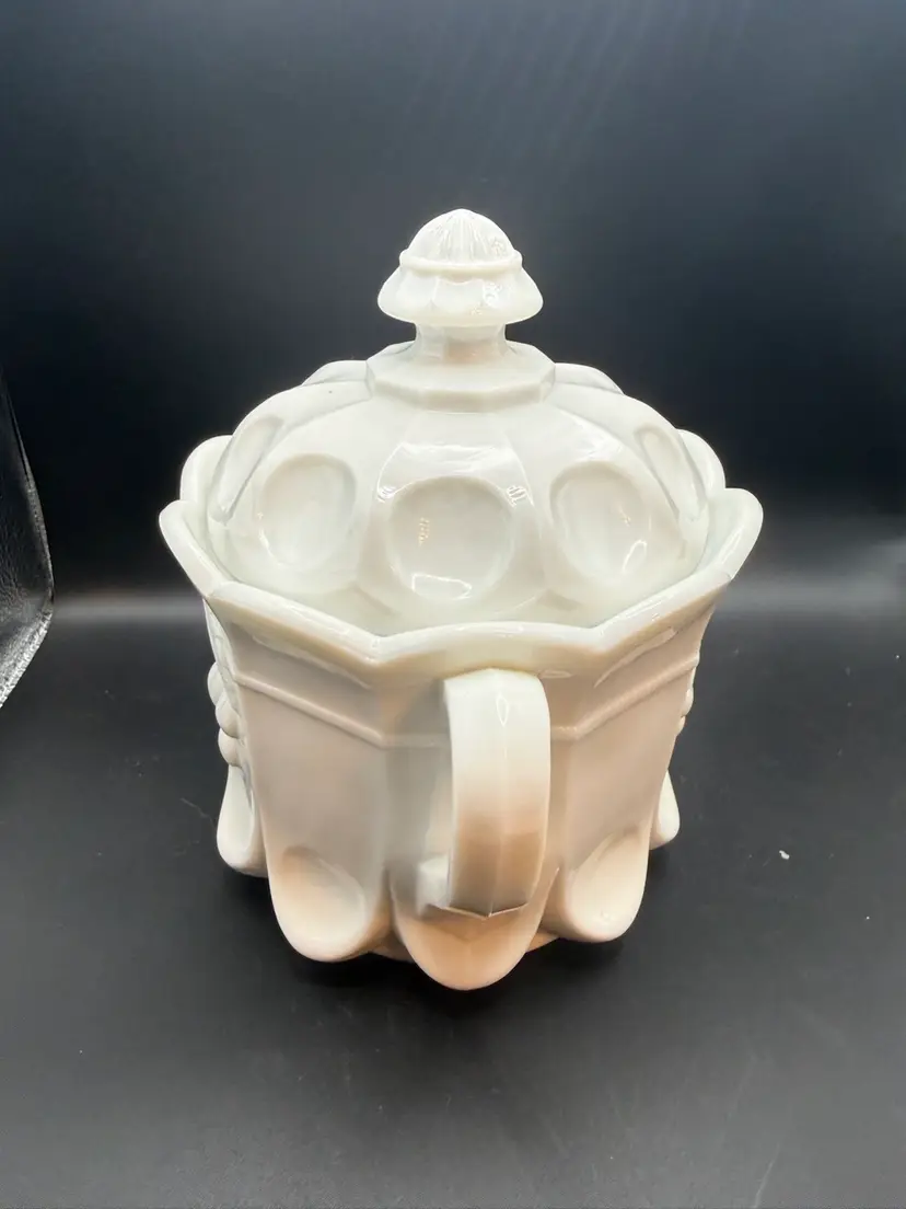 Westmoreland Glass was one of the biggest makers of milk glass and this amazing gem is exquisite! It is 8.5 x 6 and has no chips, cracks or dings. Such a unique piece with two handles made circa 1960.