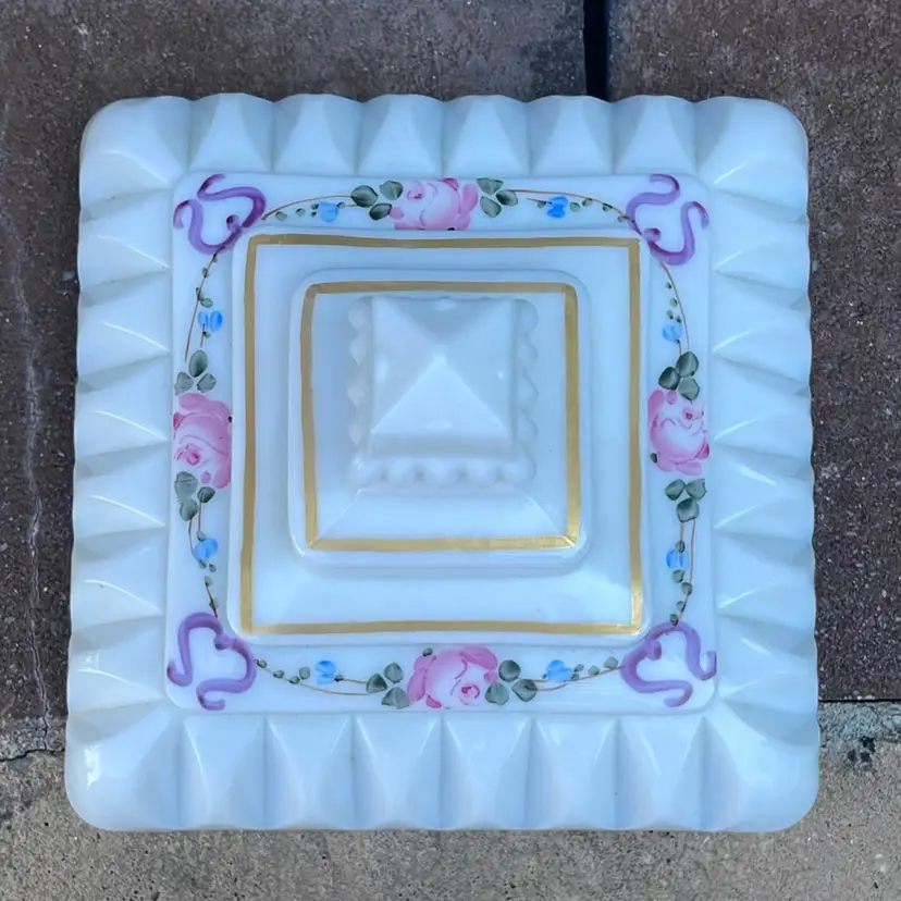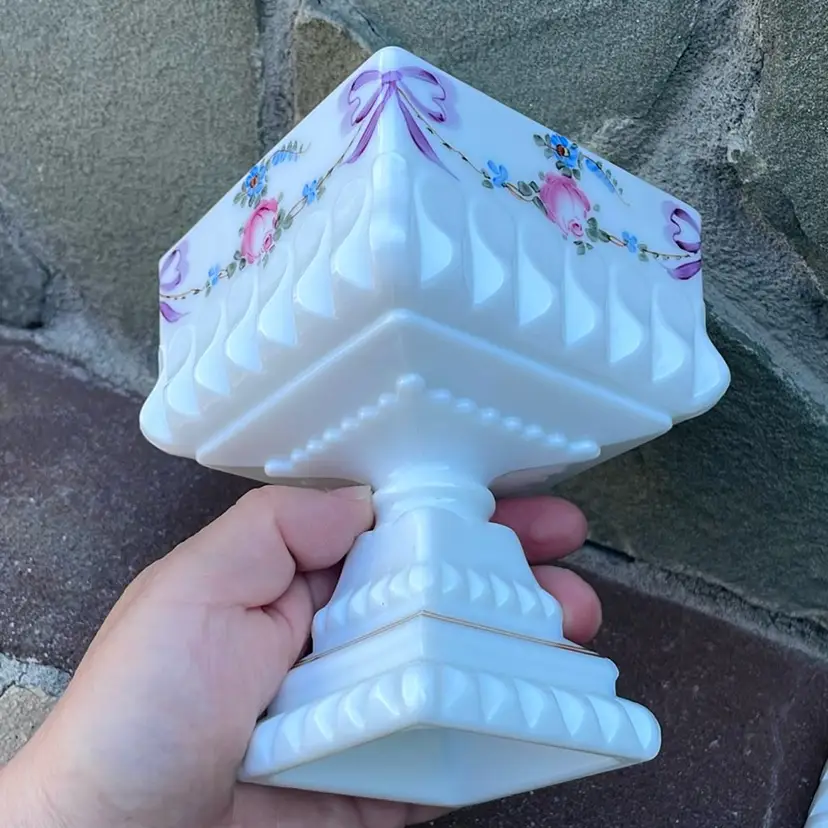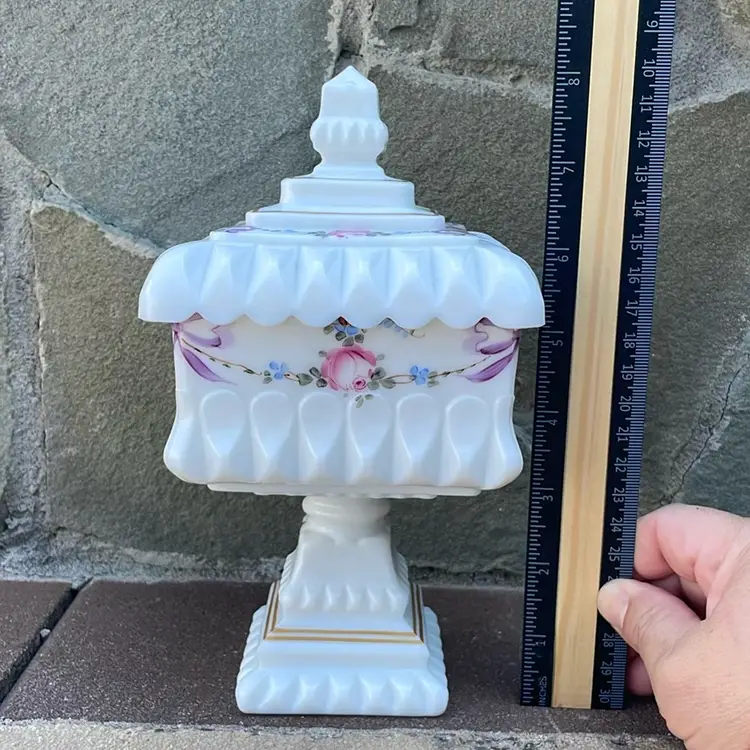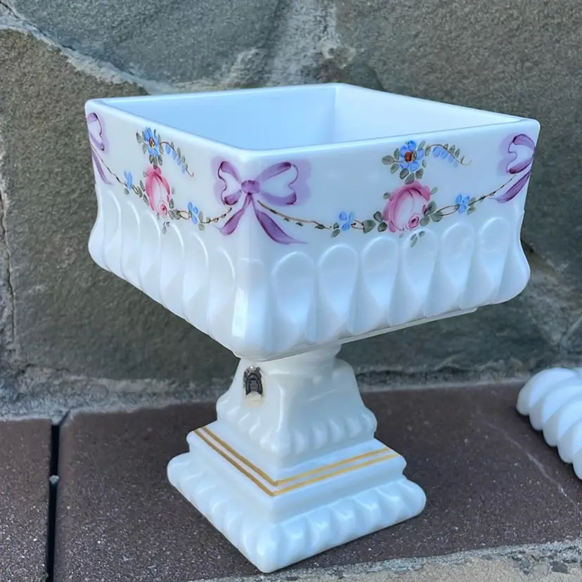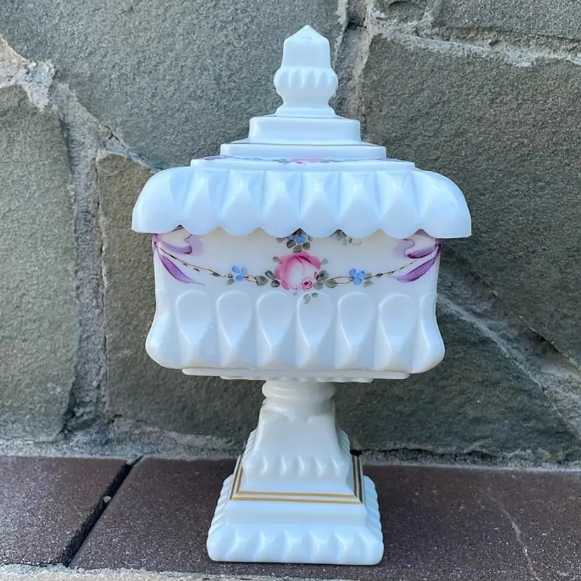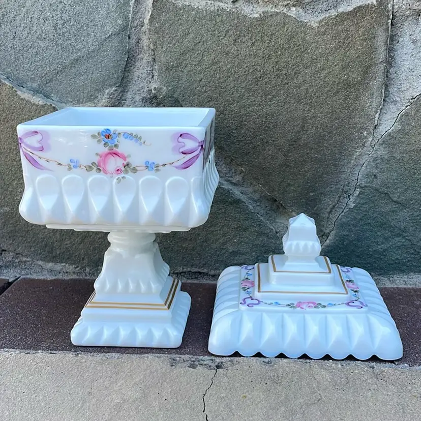 Westmoreland Milk Glass Wedding Covered Candy Roses & Bows & glass candy