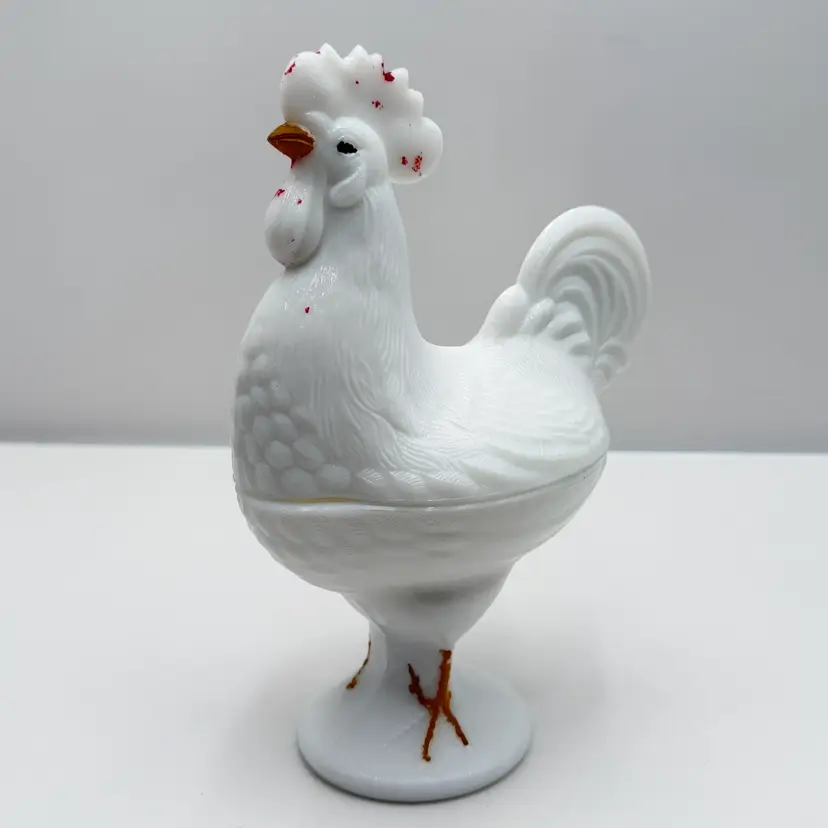 As shown No chips or cracks but some red paint loss 8 inches tall by 6 inches long