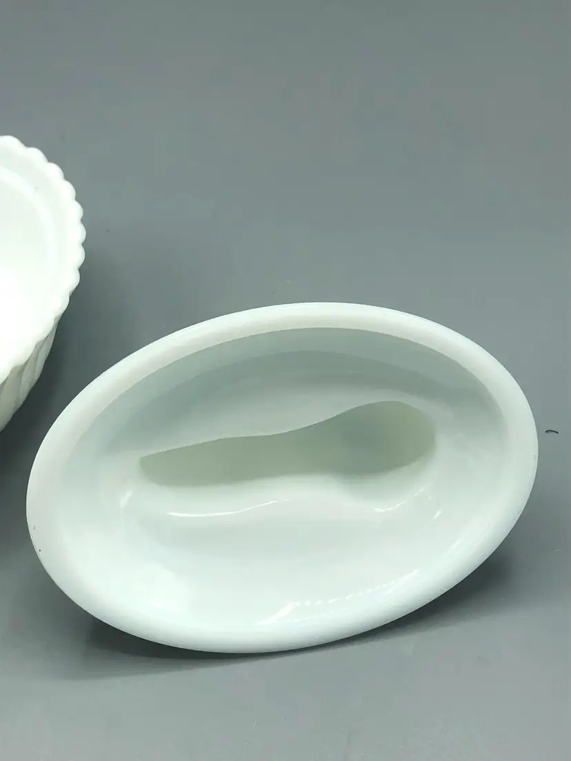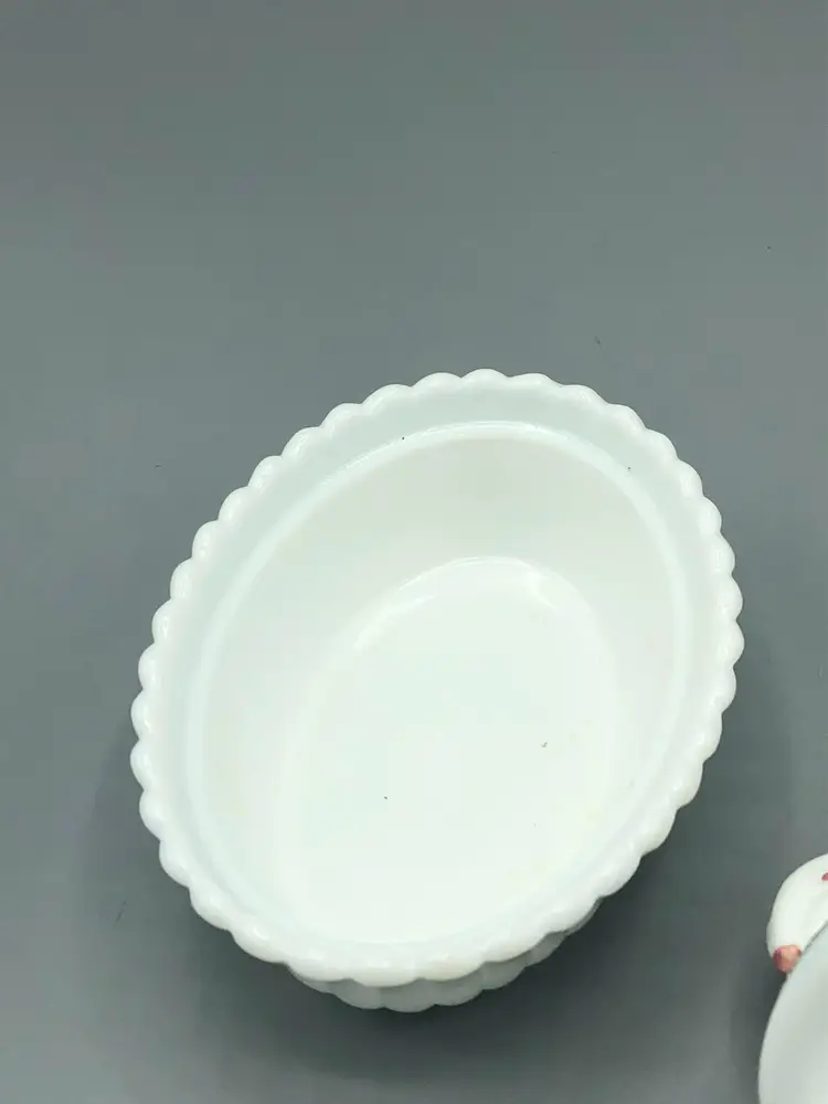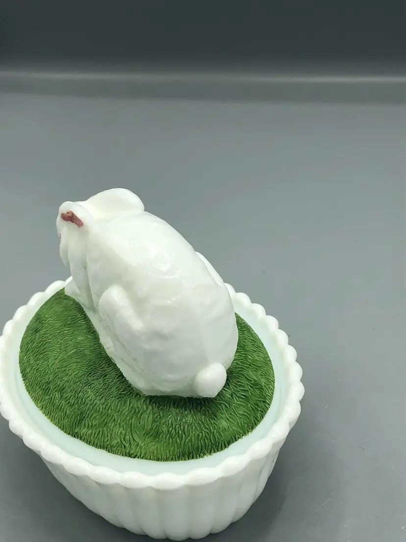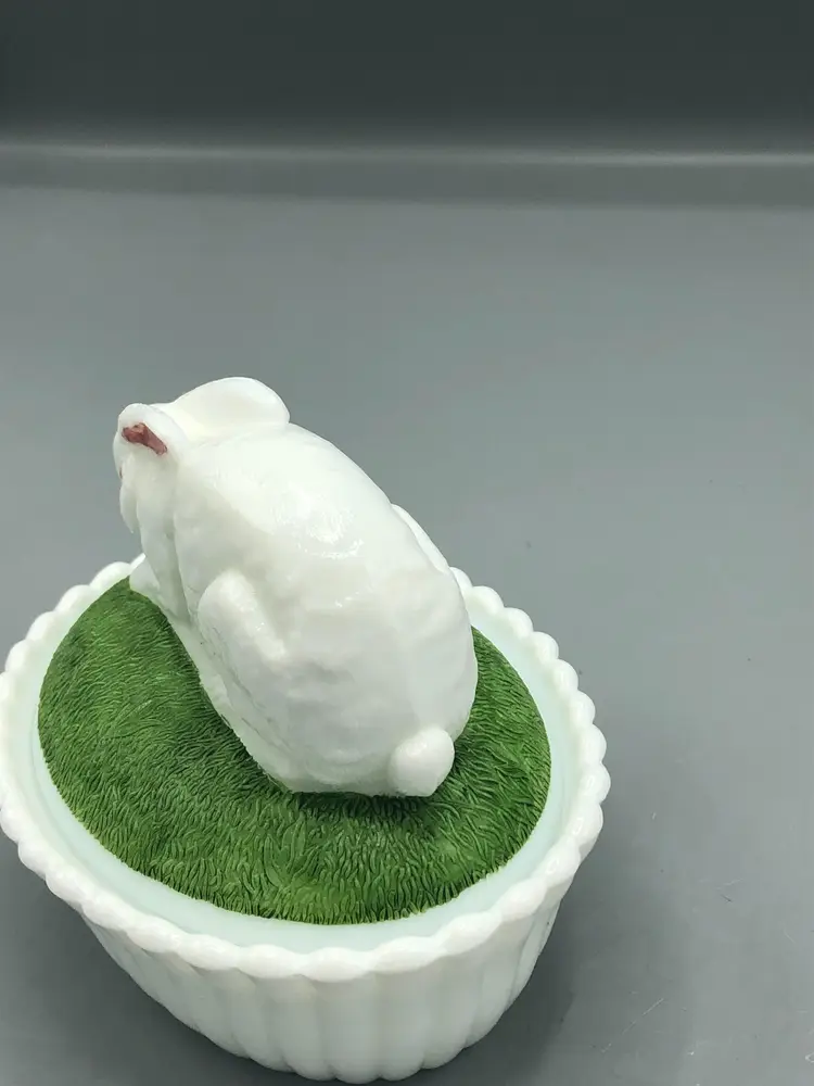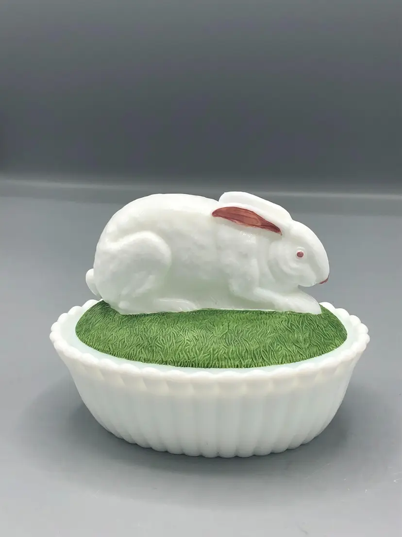 Westmorland milk glass painted rabbit dish that would look stunning in any decor or give as a gift to any collector of milk glass. This is a rare find. The paint on these is stunning in person. This can be used candy dish, trinkets, or just to admire.