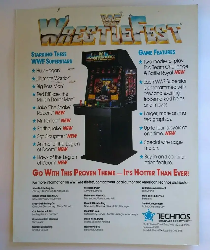 Arcade: Flyer Theme: Wrestling Modified Item: No Country/Region of Manufacture: United States Original/Reproduction: Original Year: 1991 Game Title: WF WrestleFest Brand: Technos