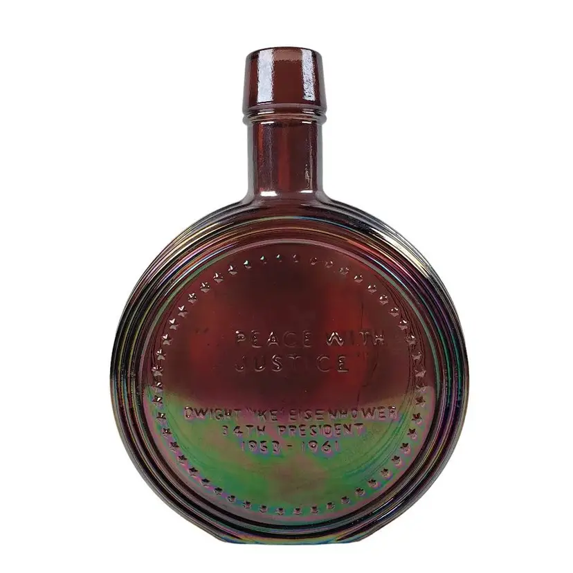 Wheaton Collectible Bottle - Presidents Series Dwight David Eisenhower Iridescent carnival glass Purple 7 5/8" tall Thick, heavy glass Condition - No chips, nicks, cracks or scratches. See photos.