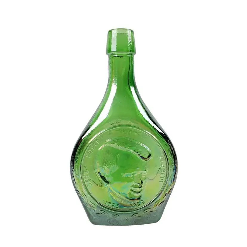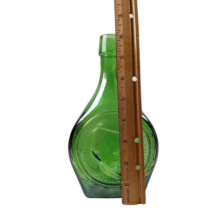 Wheaton Collectible Bottle Senator Robert Francis Kennedy Iridescent carnival glass Green 8 1/2" tall Thick, heavy glass Condition - No chips, nicks, cracks or scratches. See photos.