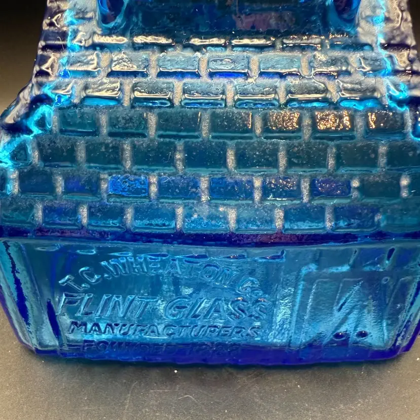 This particular coin bank, designed in the shape of a log cabin, is a classic example of Wheaton's collectible glass output from the late 19th and early 20th centuries.