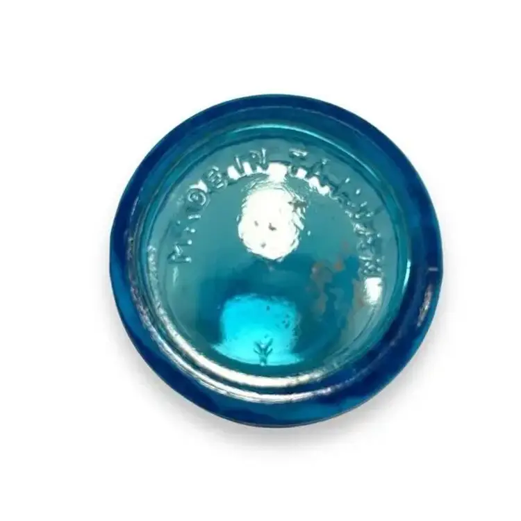 This adorable vintage miniature is in excellent condition. There are no chips or cracks. It's a mini reproduction of the original Wheaton larger size bottles. It is blue glass and made to looked like a barrel. The front has “Root Bitters” written on it. It’s approximately 4” tall.