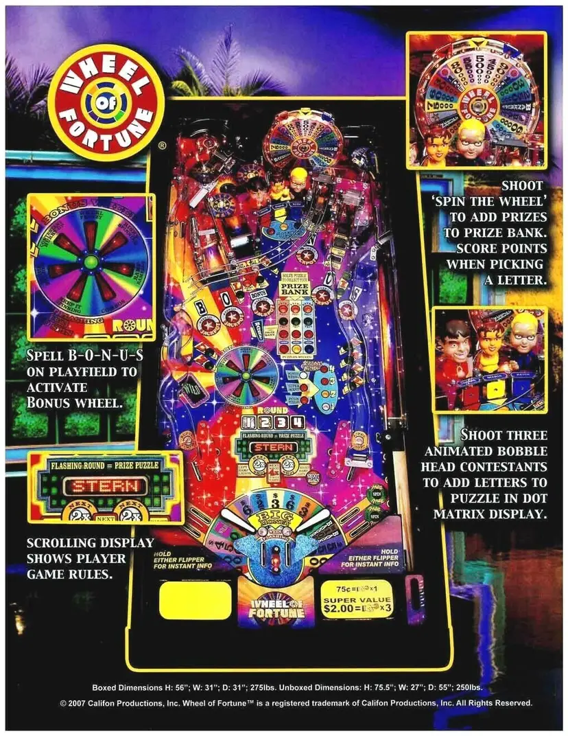 Brand: Stern Year: 2007 Country/Region of Manufacture: United States Model: Wheel of Fortune Original: Paper Sales Flyer Modified Item: No Pinball: Flyer