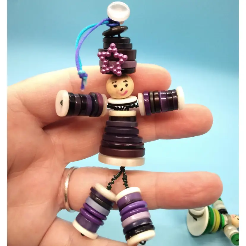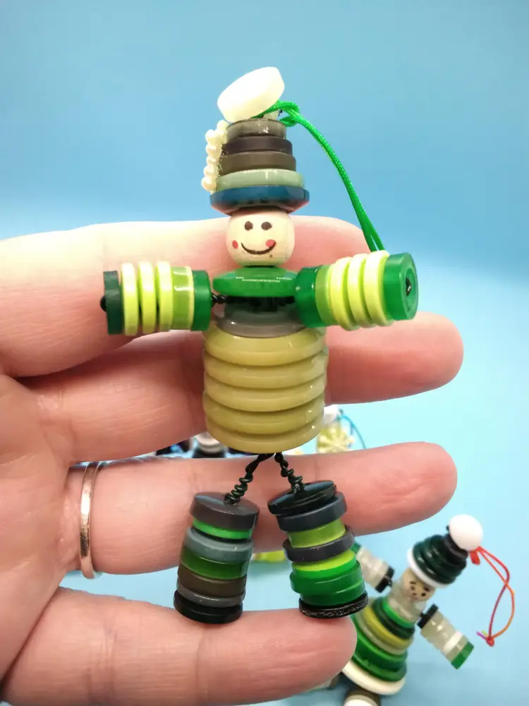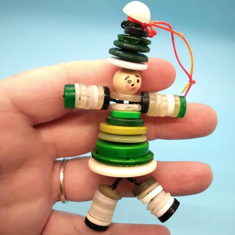 Meet my quirky button elves! Each one is handcrafted with a mix of colorful buttons and beads, bringing a playful touch to any space. Perfect for adding a bit of fun to your Christmas tree, gift, or stocking stuffer.