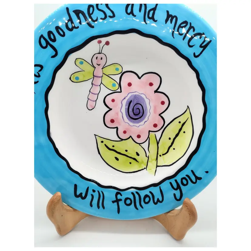 Item is pre-owned and in very good condition with no cracks or chips. Smoke free environment. This is such an adorable colorful handpainted plate with a flower & dragonfly with a blue rim. Plate measures 8in.